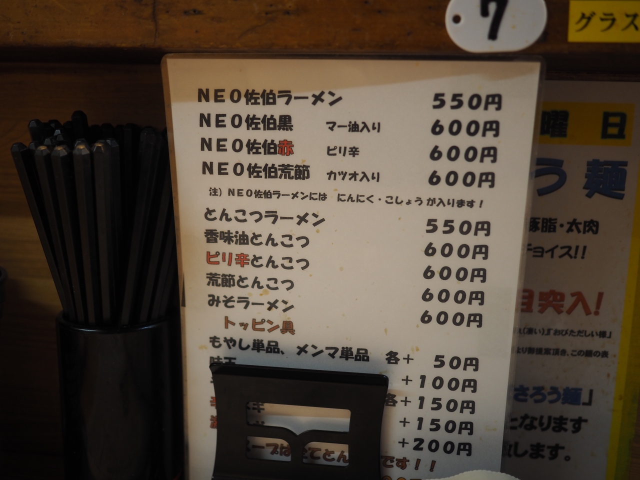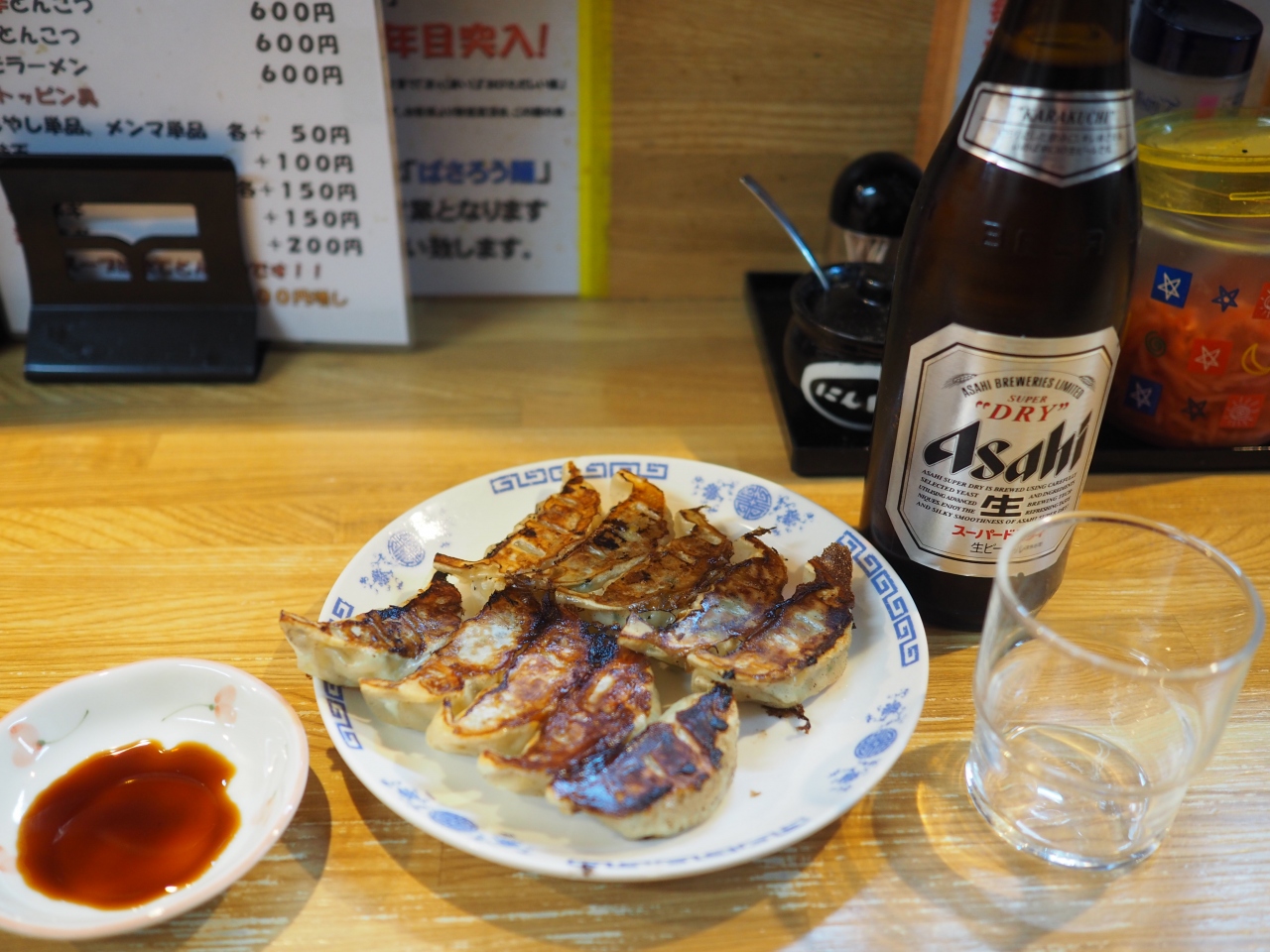 注文したのはとんこつラーメン550円、それに焼き餃子とビール。NEO佐伯ラーメン550円が人気のようですが、ニンニク多めが苦手なので、スタンダードなラーメンをチョイス。いまどきラーメン550円というのが貴重で嬉しいです。店主の意気込みが感じられます。