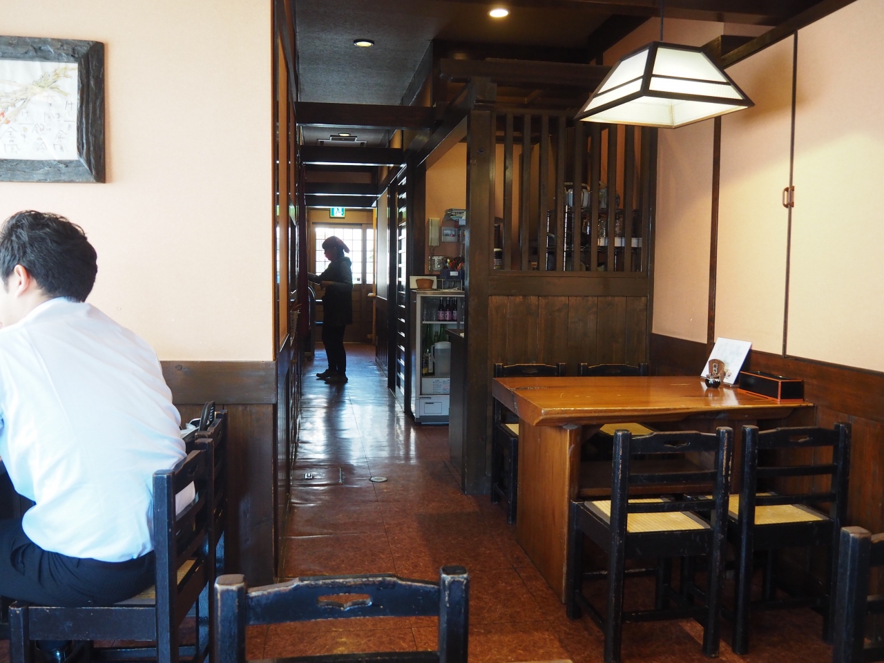 入店はちょうど12時頃、先客が3組いました。観光客だけでなく、地元の方も訪れるお店です。店内は落ち着いた和風で良い雰囲気。女性スタッフの応対も明るく丁寧で好感が持てます。