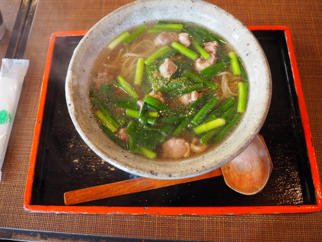 店の名物メニューは鍋焼きうどんですが、時間がかかるので蕎麦の方が早いと言われ、鴨なんばんそば1,000円を頼みました。鴨南蛮は大好きで、行きつけの蕎麦屋でもよく食べるのですが、当店は甘めで、ややとろみの付いただし汁に青ネギ、それに鴨肉です。自己主張しすぎない美味しいそばに優しいだし汁、家庭的でとても癒されます。