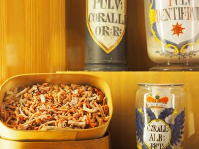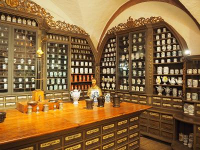 ゴシック期やルネサンス期の薬品保管容器やすり鉢、18世紀から19世紀の古い薬局施設なども興味深い展示です。