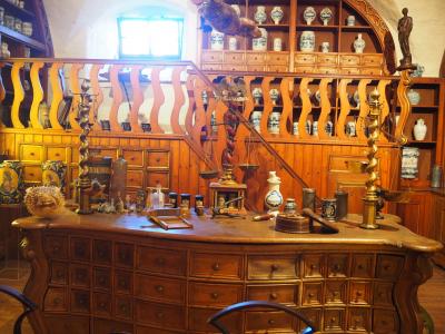 ハイデルベルク城見物のついでに訪れました。オットハインリヒ館に玄関・インフォメーション、同一フロアと薬局塔に9の展示室、売店・出口があります。10のテーマに沿ってゴシック・ルネサンス期から19世紀までの薬事の歴史、ドイツの薬剤師教育の変遷、調剤道具類、古来の薬など約2万もの収集品を展示しています。