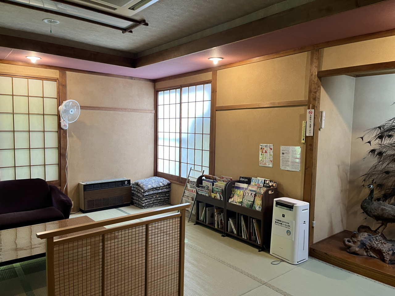 現在は廃業したようですが、以前は旅館を営んでいたので、休憩室やトイレも完備しています。休憩室には旅の雑誌が数多く並んでいるので、それを読みながらちょっと休憩します。
