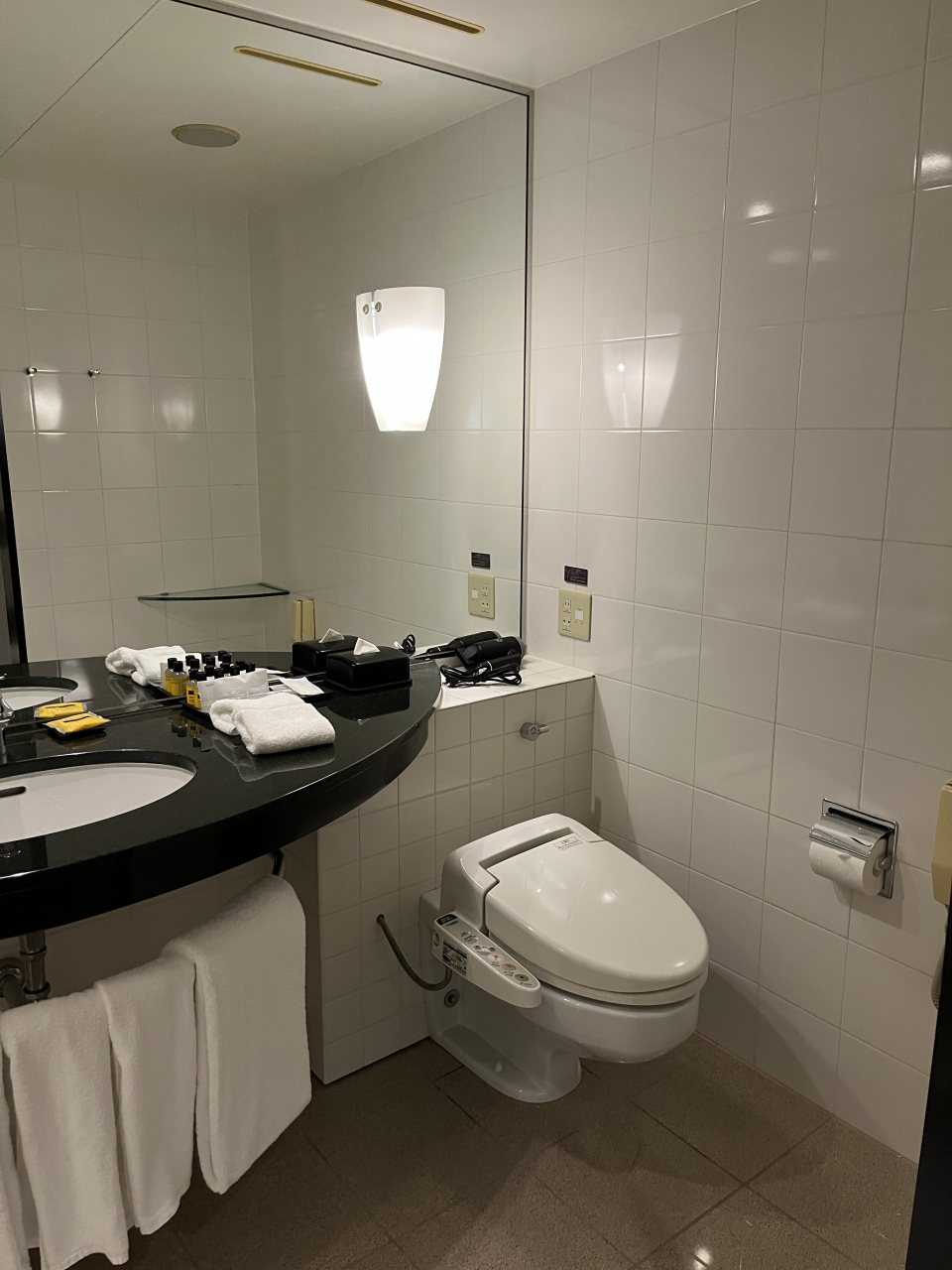 客室やアメニティも上質、デュべの肌触りはビジホなどとは桁違いのなめらかさ、さすがシティホテルです。インバウンドが増えたとは言え、ビジネスホテルが進化した現在では経営は必ずしも楽ではないかと思いますが、万博跡地にIRができるまで、なんとか頑張ってほしいと思います。- 旅行時期