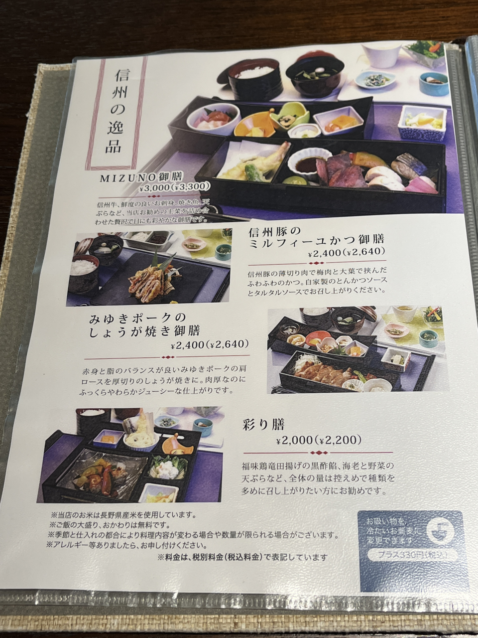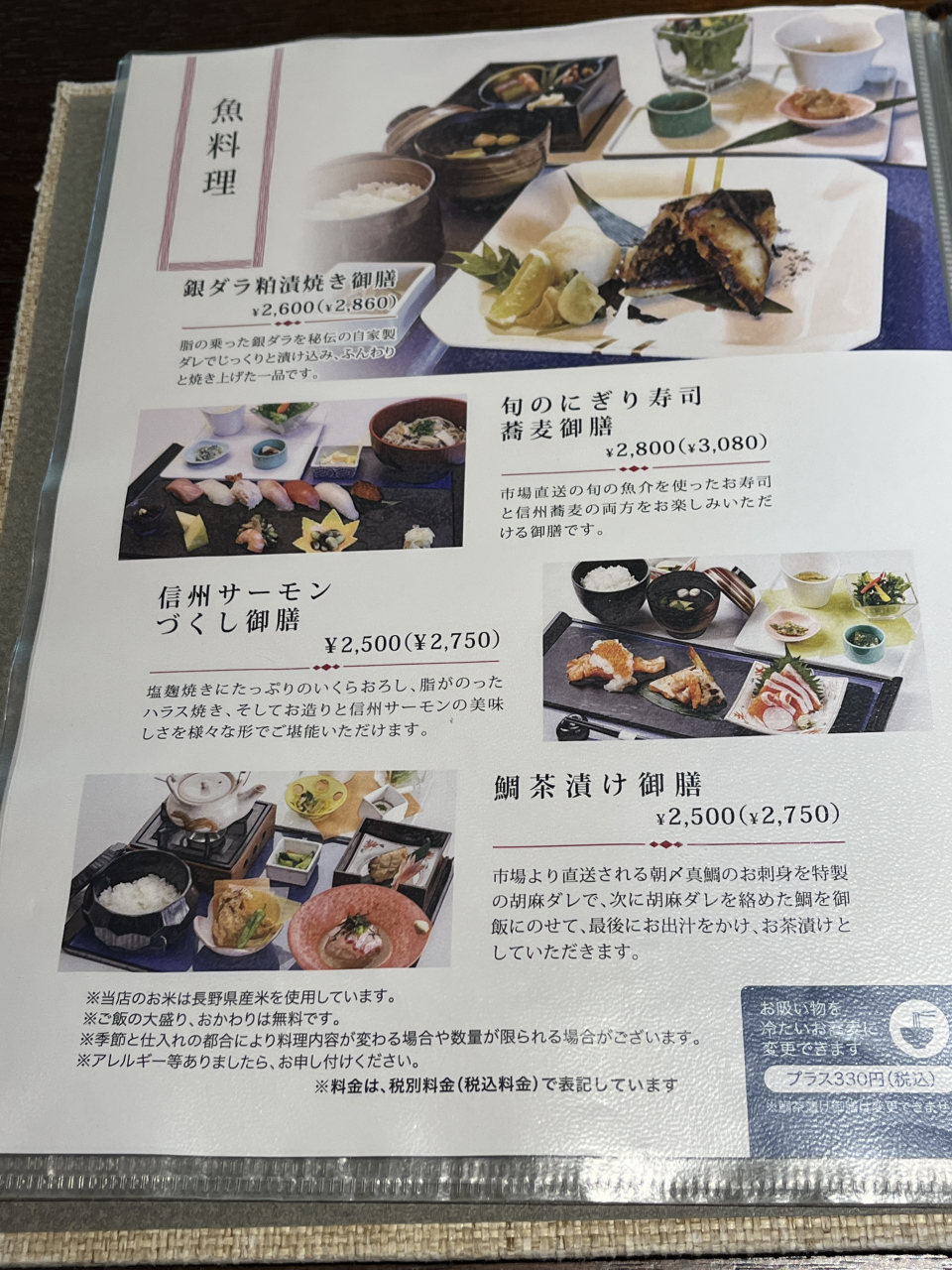 残念だったのは夕食の味付け。砂糖を多用しているのか、甘すぎて私の口に合いません。別注の日本酒「善光寺西之門 純米吟醸」は砂糖水かと思わせる超甘口で料理をすっかり駄目にしました。メニューにせめて甘口・辛口の表示があればよかったのに。スタッフの動きはテキパキとしていたのが救いです。