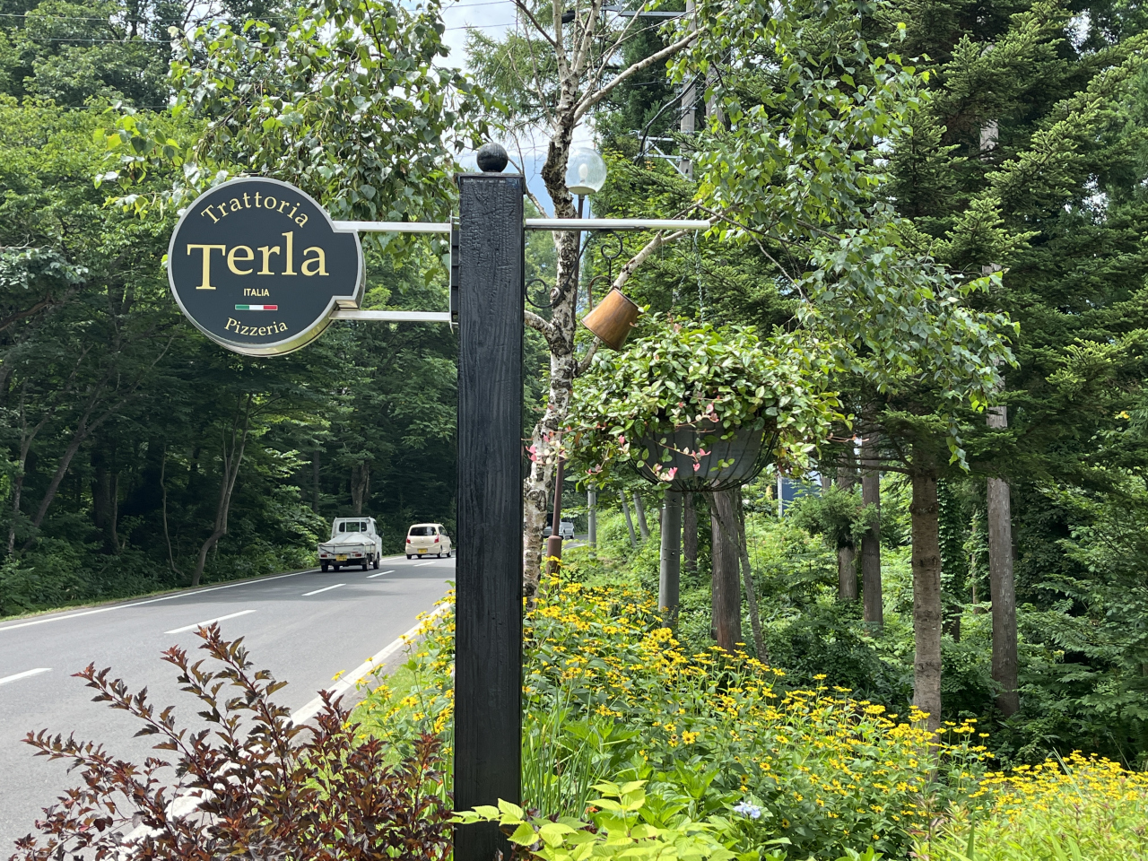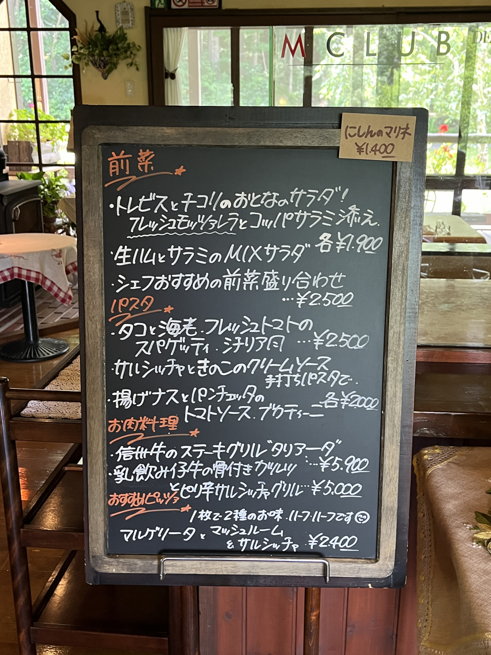 長野県信濃町、黒姫高原の長野県道119号杉野沢黒姫停車場線(一茶通り)沿いにあるトラットリア。ネットで見つけてランチに立ち寄りました。クチコミで「予約必須」とあったので電話予約して訪れました。平日にも関わらず店は予約で満席、予約しておいて良かったです。黒姫高原には古くから別荘が数多くあり、そうした別荘族の間ではよく知られたイタリア料理店のようです。