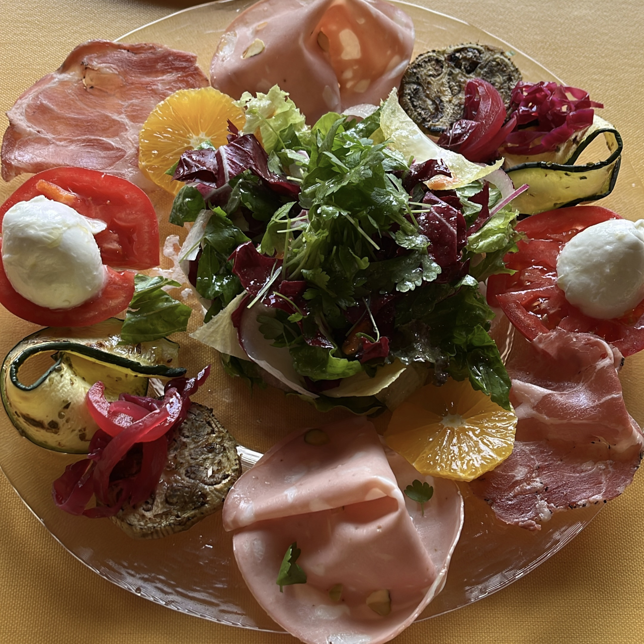 サラダはチコリの爽やかな苦味が絶品、ほかの野菜やサラミもフレッシュでプレゼンテーションが美しく、とても美味しい。ラザーニャもこれまで食べた中で一番美味しい。本格的なイタリア料理に久々に出会った気分です。