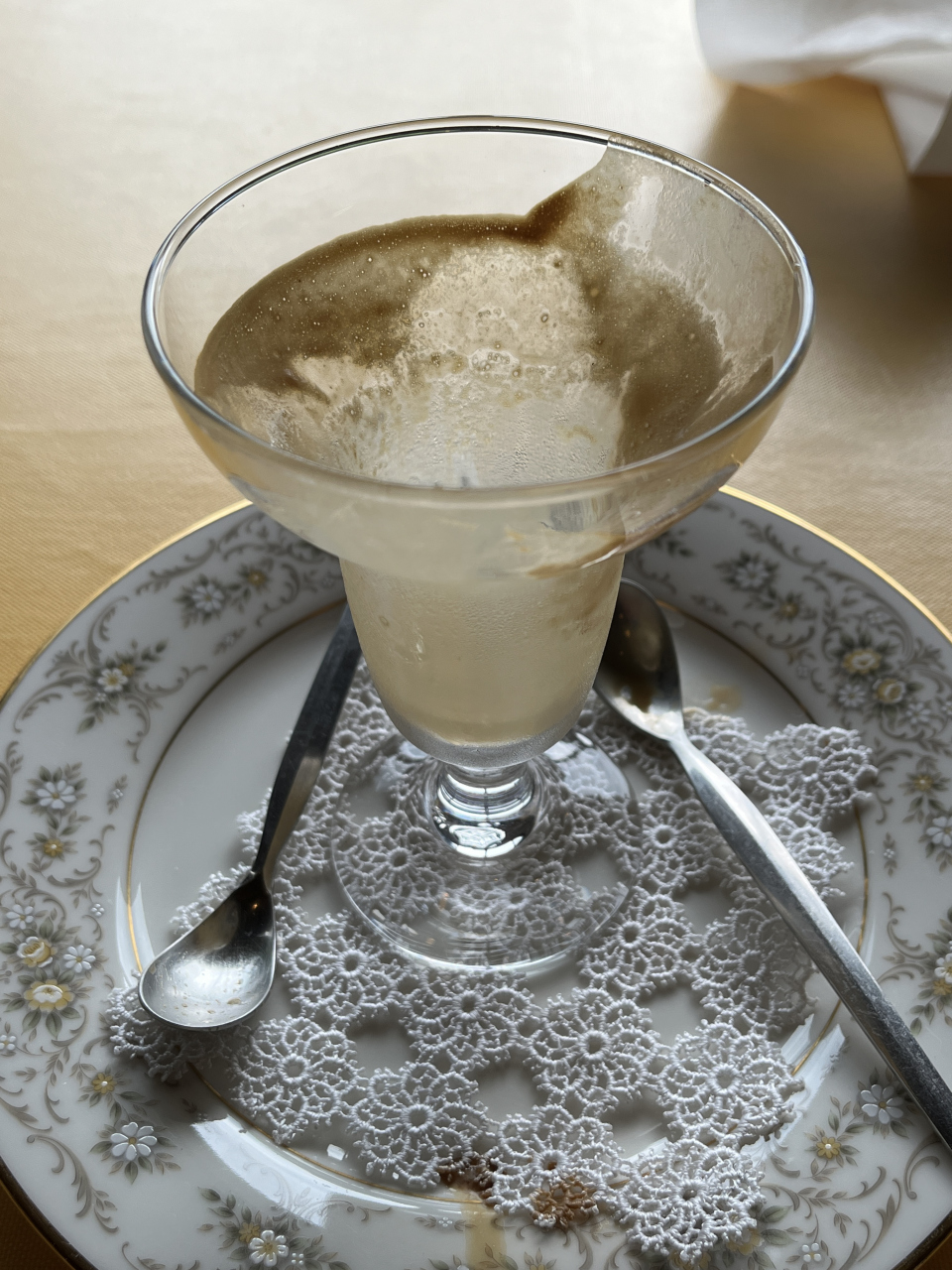 初めてで料理の量がわからなかったので、前菜にトレビスとチコリのおとなのサラダ!フレッシュモッツアレラとコッパサラミ添え 1,900円、パスタは自家製ラザーニャ 2,000円を注文し、二人でシェアしました。歳も歳だけに二人ともこれでお腹いっぱい、あとはレッドオレンジジュースとデザートはアッフォガート 1,000円です。