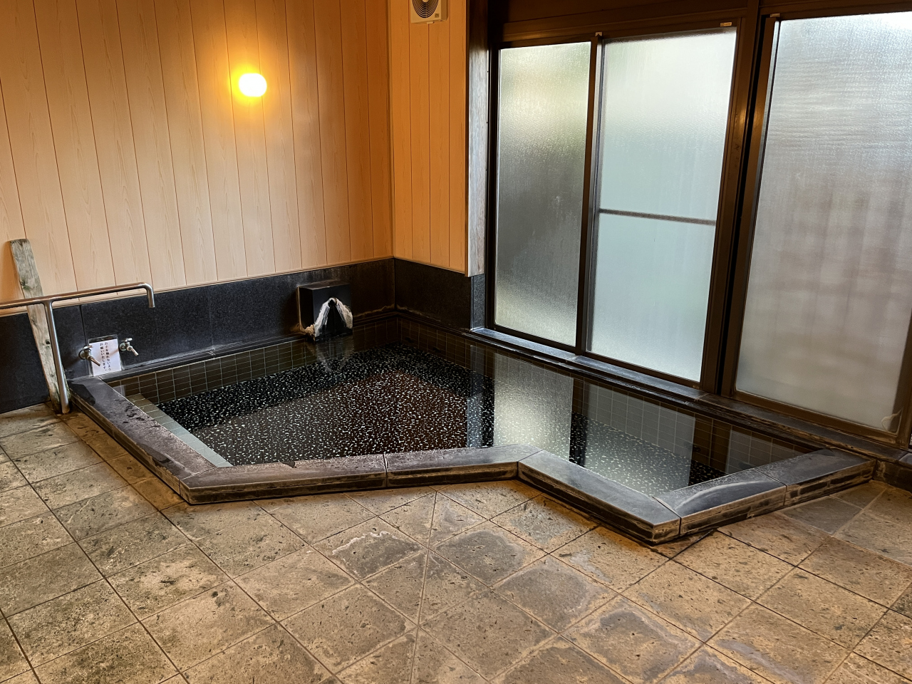 温泉はpH 9.6、高アルカリでヌルヌルの美肌の湯。加温されていますが、源泉100%かけ流しの気持ちが良い温泉です。申し分ありません。