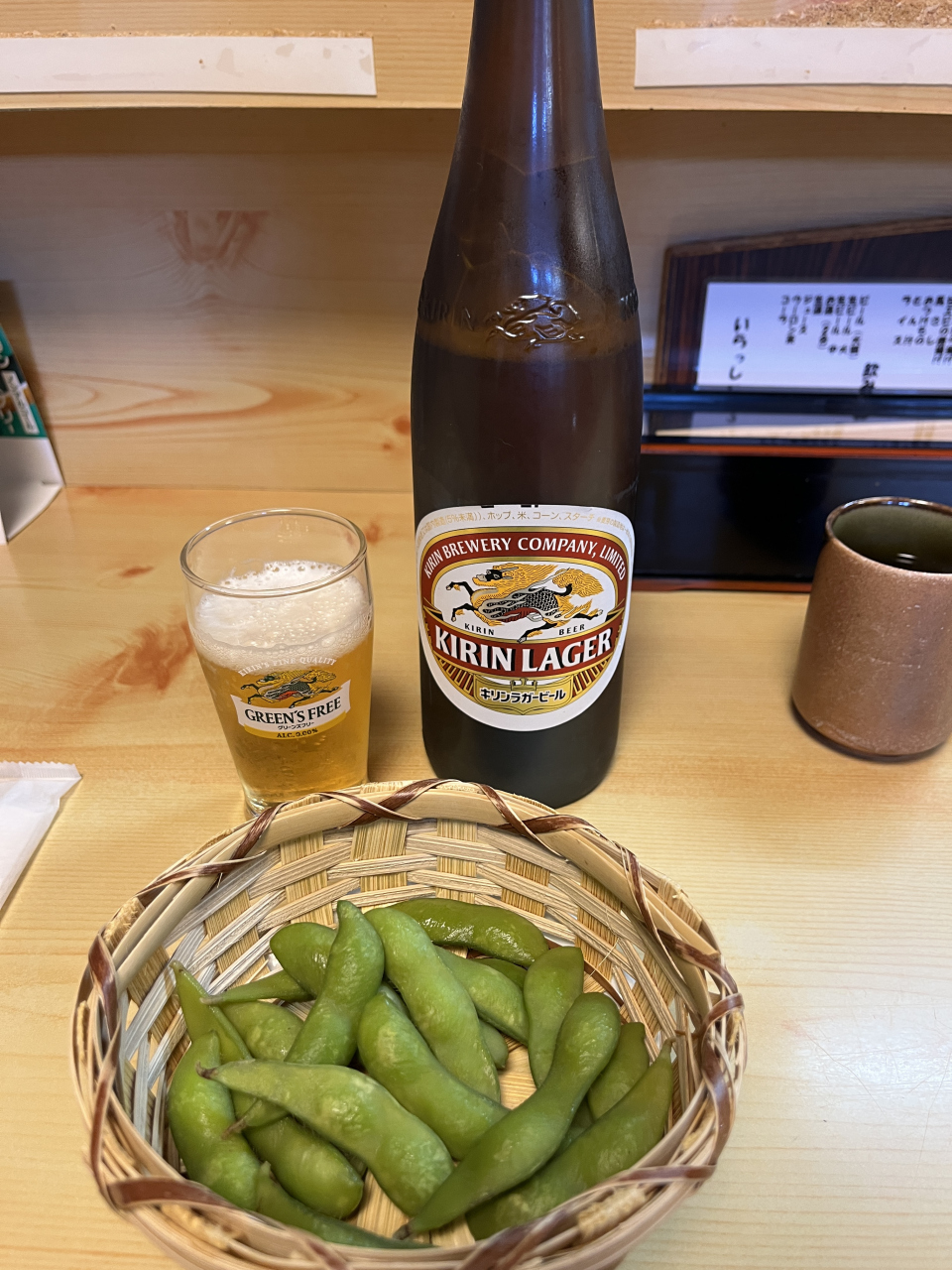 今回はそばがき(当店オリジナルで揚げてあります)350円を追加、飲み物はスーパードライ中瓶 600円、信州亀齢1合 1,000円、タチアカネ焼酎(ロック)700円を飲みました。