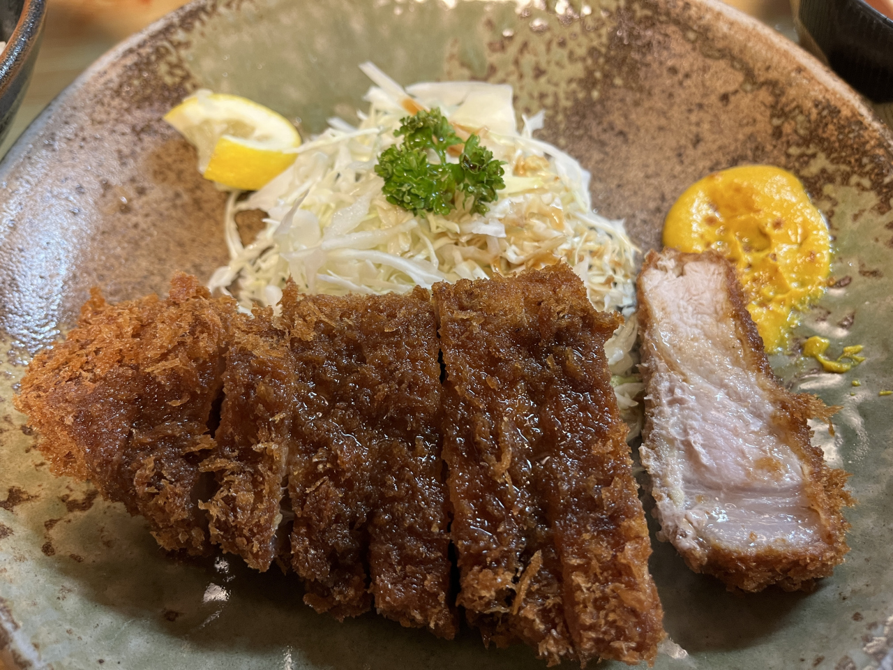 トンカツは衣がザクっとして黄金色の見事なあがり具合、そして分厚い。ふだんよく行く大好きなトンカツチェーンのものと迫力が違います。一口食べるとサクッと柔らかい肉質、脂身はくどくなく優しい甘さが広がります。期待以上の美味しさです。