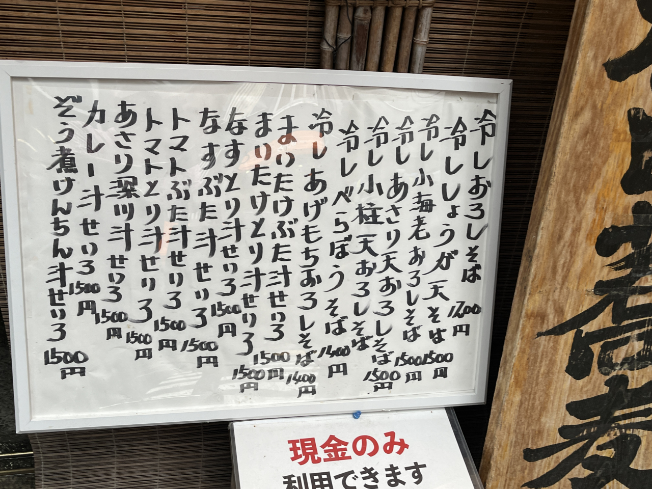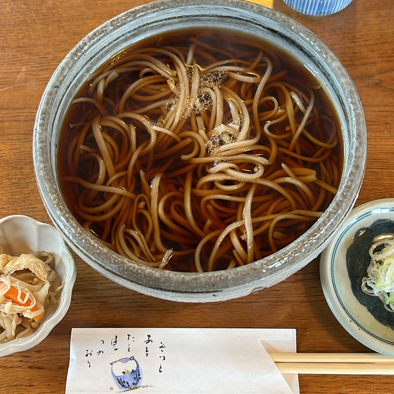 それほどお腹が空いていないのでかけそば770円をオーダー。さほど待つことなく配膳されます。そばもつゆもちゃんと美味しい。値段も安く、申し分ありません。地元客が大勢訪れているのも納得です。店内を見回すと「にらそば」の表示があちこちに貼ってあるので「にらそば」がおすすめメニューのようです。