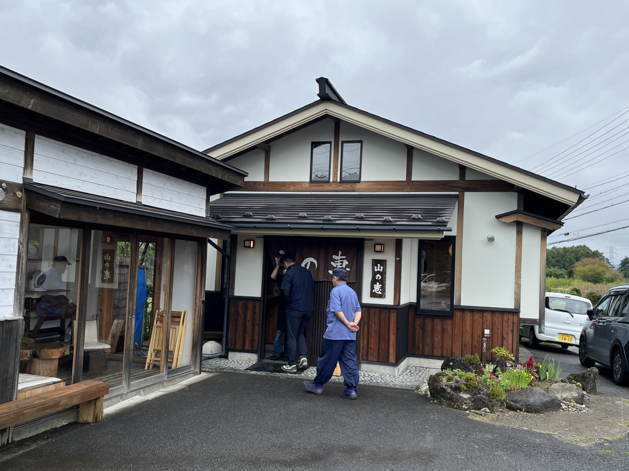平日正午に入店すると駐車場は最後の1台、店内も最後の1席。後続客は入店待ちで予想通り人気店です。観光客・地元客それぞれです。