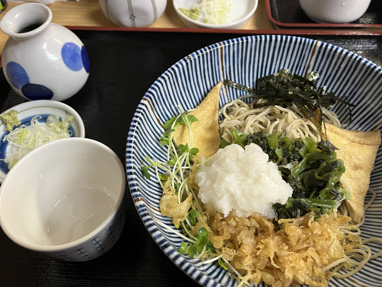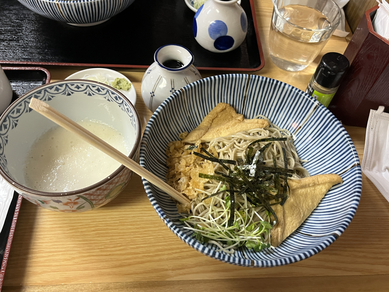 老舗そば店にも拘らずメニューは豊富。メニューにないものも頼めば作ってくれます。そんなわけで私はカレー南蛮、妻はワサビの葉おろしそば、孫はとろろそばを注文。どれも申し分なく美味しいのですが、ボリュームが半端ない。注文時に「量を減らしますか?100円引きです」と言われましたが、初めてで量がわからなかったのでそのままにしましたが、後になって理解できました。案の定、孫は食べきれません。女性や子供は量少なめを選択するのが正解です。