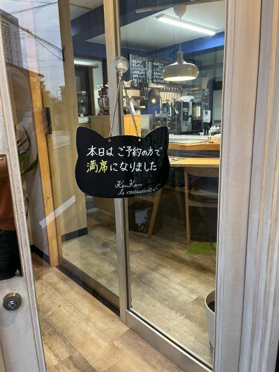 2週間ほど前にネット予約して訪れました。オープンキッチン、カウンター8席のみの小さなお店なので、予約必須。月曜日のこの日も「予約で満席」の表示があります。場所柄、私のような観光客もいますが、諏訪・塩尻・岡谷・飯田・茅野など近隣の町の食いしん坊が多いそうです。