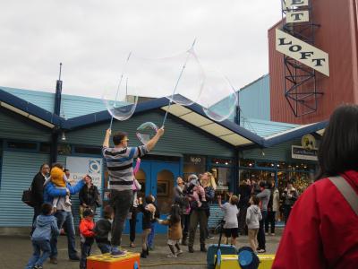 各所にある広場では、様々なイベントや大道芸が行われていて、気軽に見物できます。このためか、観光客だけでなく地元の親子連れもたくさん来て賑わっています。