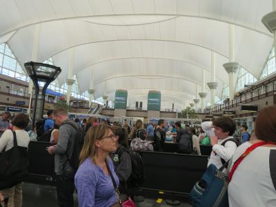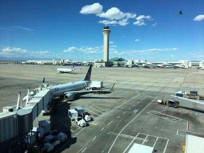 デンバー国際空港はユナイテッド航空のハブ空港です。総敷地面積は商用空港としてはアメリカ最大、現在は交差しない6本の滑走路がありますが、12本まで増設可能だそうです。ユナイテッド航空はターミナルBに接続します。