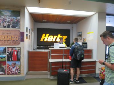 その向かい側がレンタカーのブース。ハーツ、アラモ、エイビスなど並んでいますが、ハーツにお客が集中していました。空港を出て右側にレンタカー専用の駐車場があり、自分で借りた車を探します。さすが自動車大国のアメリカ、結構な数のレンタカーが並んでいますが、駐車場に会社の表示と番号が振られているので、よほどのことがない限り探し出すのに苦労はありません。