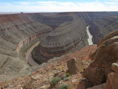 蛇行するサンファン川が刻んだ絶景を望むことができます。景色があまりに大きすぎて、カメラにうまく収めることができないくらいです。