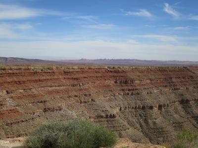 実際、アリゲーターという尾根の左側にコロラド川が流れ、幾つもの断崖が折り重なるように見える絶景が楽しめます。3つ回ったウエストリムの中では一番美しい眺めだと思います。とりわけ夕刻は光と陰のコントラストが際立って、見応えがあります。サンセットを見るにも向いているとのことです。