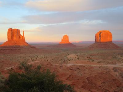 ホースシューベンドより雄大ですが、近くにあるモニュメントバレーの陰に隠れて訪れる人は多くありません。荒々しいアメリカの原野の光景をゆったり楽しむことができます。
