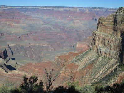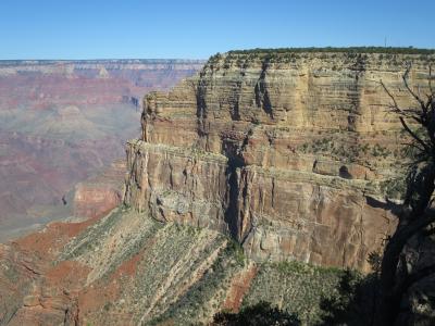 グランドキャニオンの東端から西方向に縦位置で見ることになるので、遠くまで雄大で美しい姿が望めます。順光になる午後の眺めが美しく、夕陽見物にも向いていると思います。グランドキャニオンで一番美しいビューポイントと言われるのは納得です。
