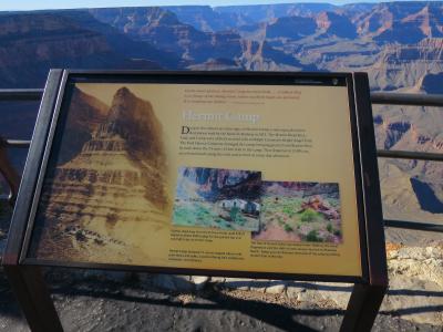 渓谷のはるか底部にハーミット・キャンプの遺構があるそうです。歴史的には、1912年にサンタフェ鉄道がハーミット・キャンプを建設し、フレッド・ハーベイ・カンパニーがツアーを実施していました。当時、ラルフ・キャメロンのブライトエンジェルトレイルが通行料を徴取していたので、それを回避するために作られたようです。箱根の西武・小田急戦争みたいですね。