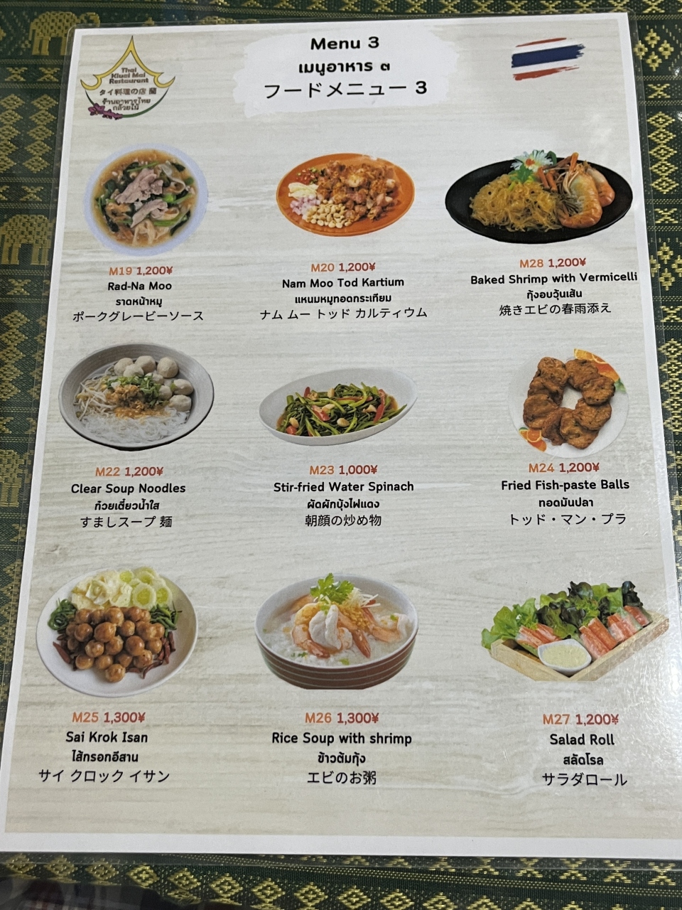 開店ちょうどの11時に到着しましたが、ドアには「準備中」の札。臨時休業かと思いましたが、ドアチャイムを押し続けると中からおじさんが出てきて招き入れてくれました。このあたりはいかにもタイ時間。ちなみに私は、ブルネイを除くASEAN全制覇、タイは何度も訪れているので慣れっこ、親しみすら感じます。
