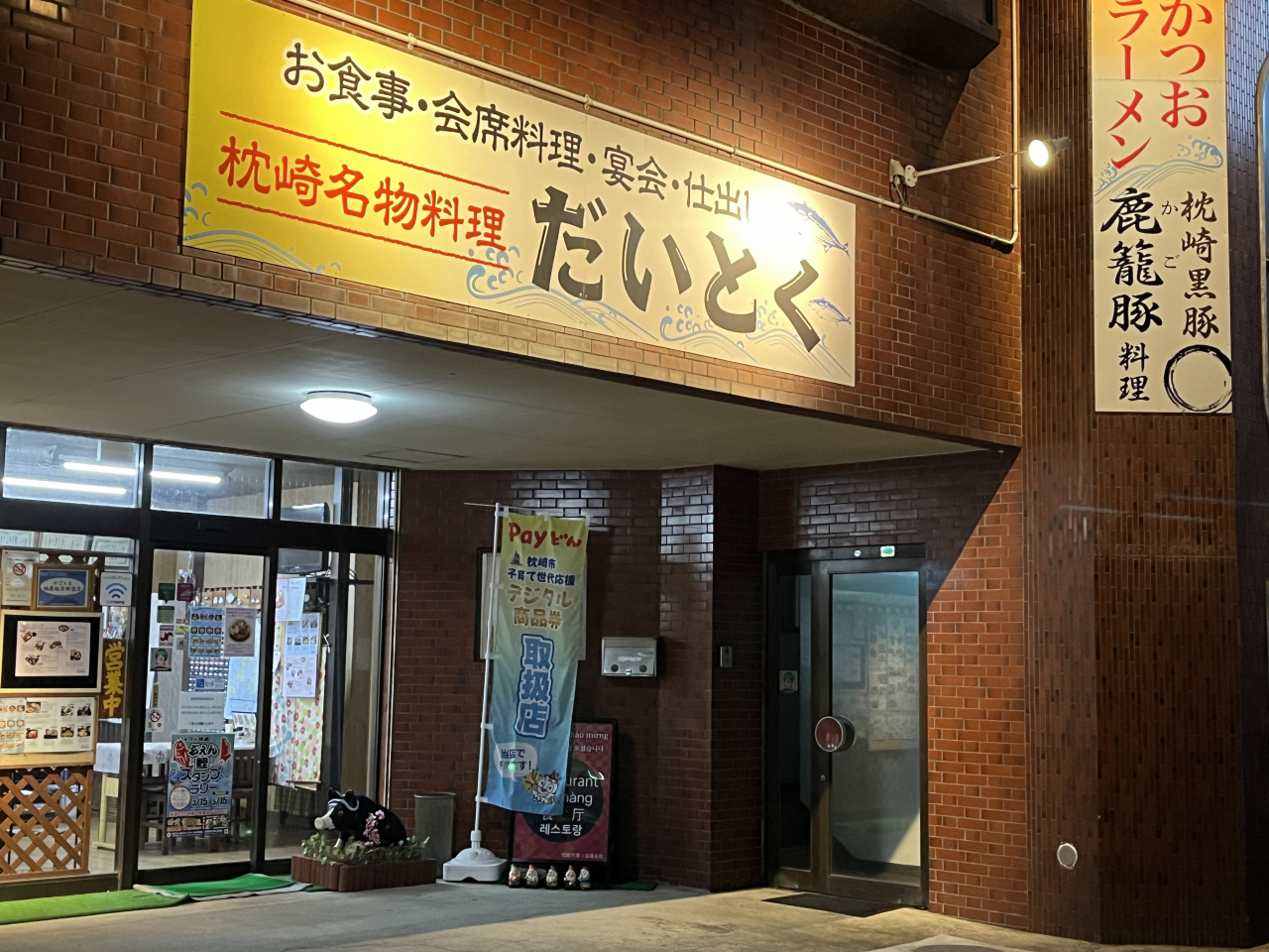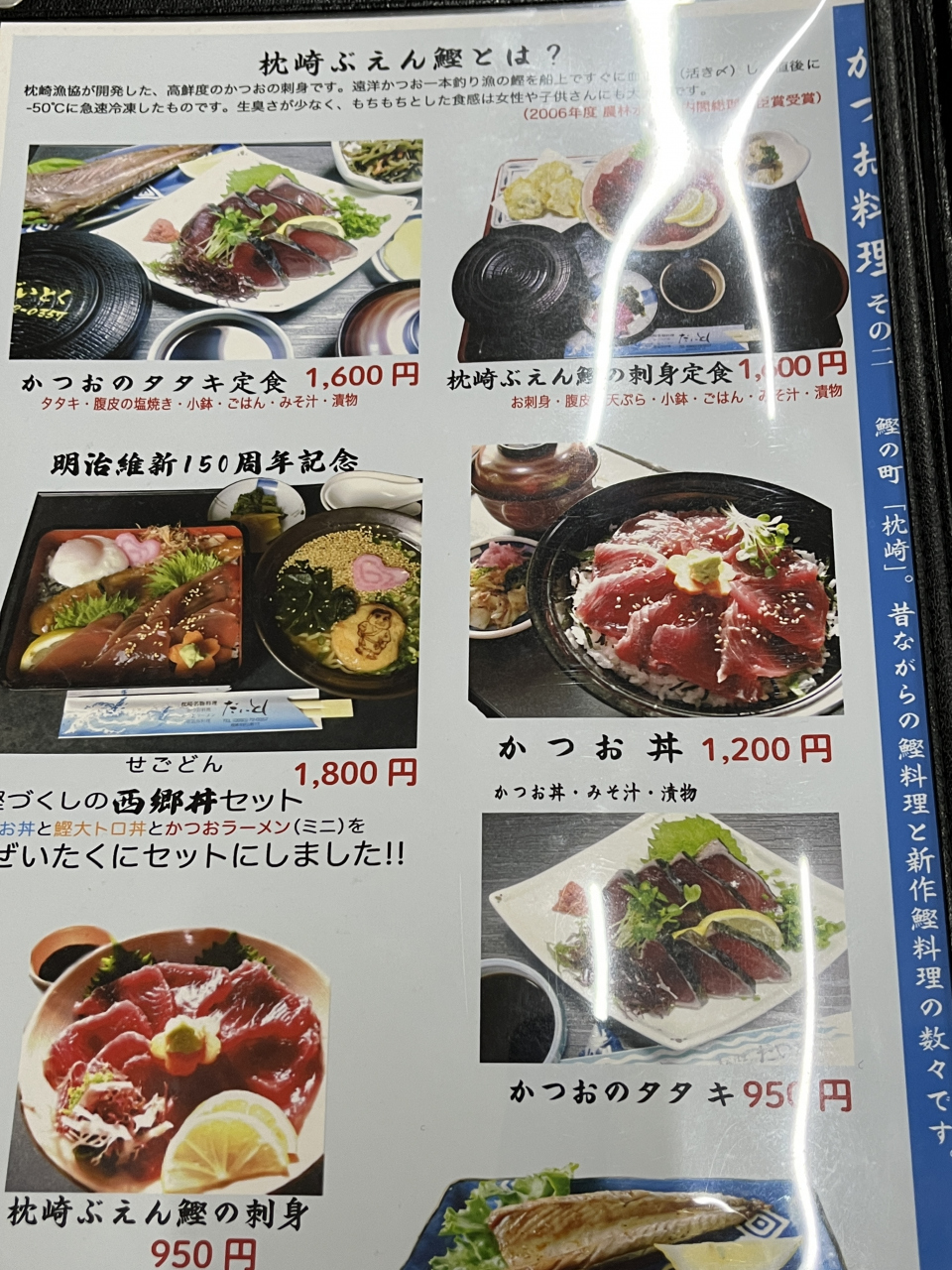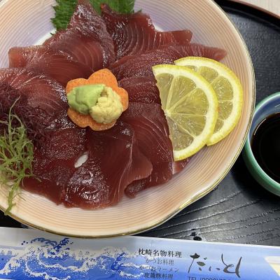 日本有数のカツオ水揚量を誇る枕崎でカツオ料理を食べようと訪れました。ホテルのお勧めです。枕崎駅から450m、徒歩6分の国道226号沿いにあり、大きな看板でわかりやすい場所です。