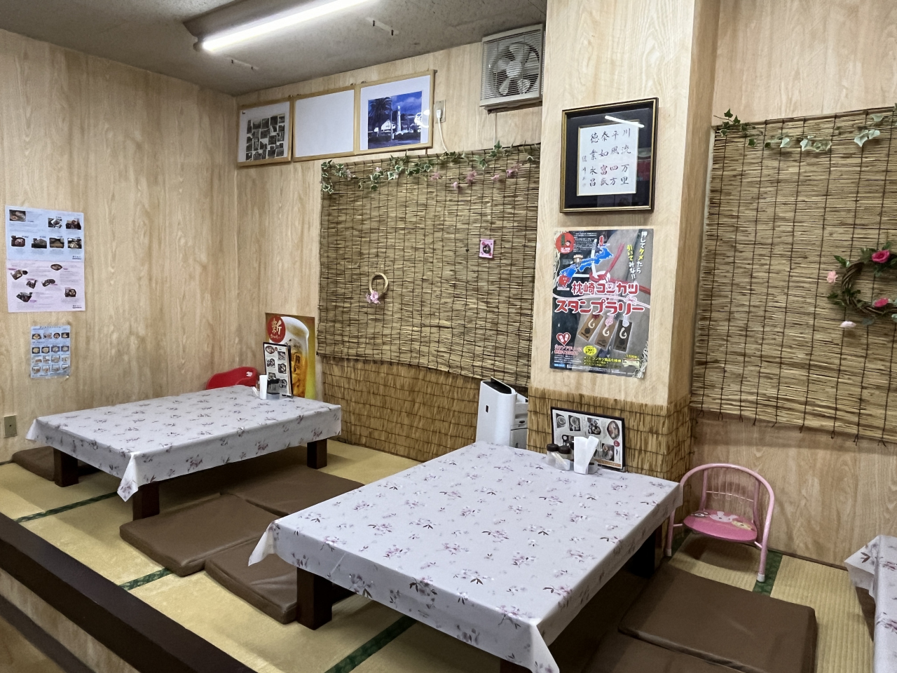 12席ほどのカウンターに小上がり2室、2階は個室があり接待需要にも対応する全38席。地元常連客と観光客ですぐ満席になるので予約必須です。