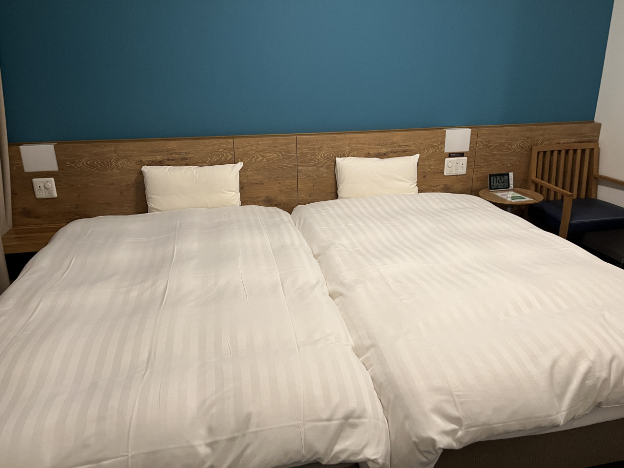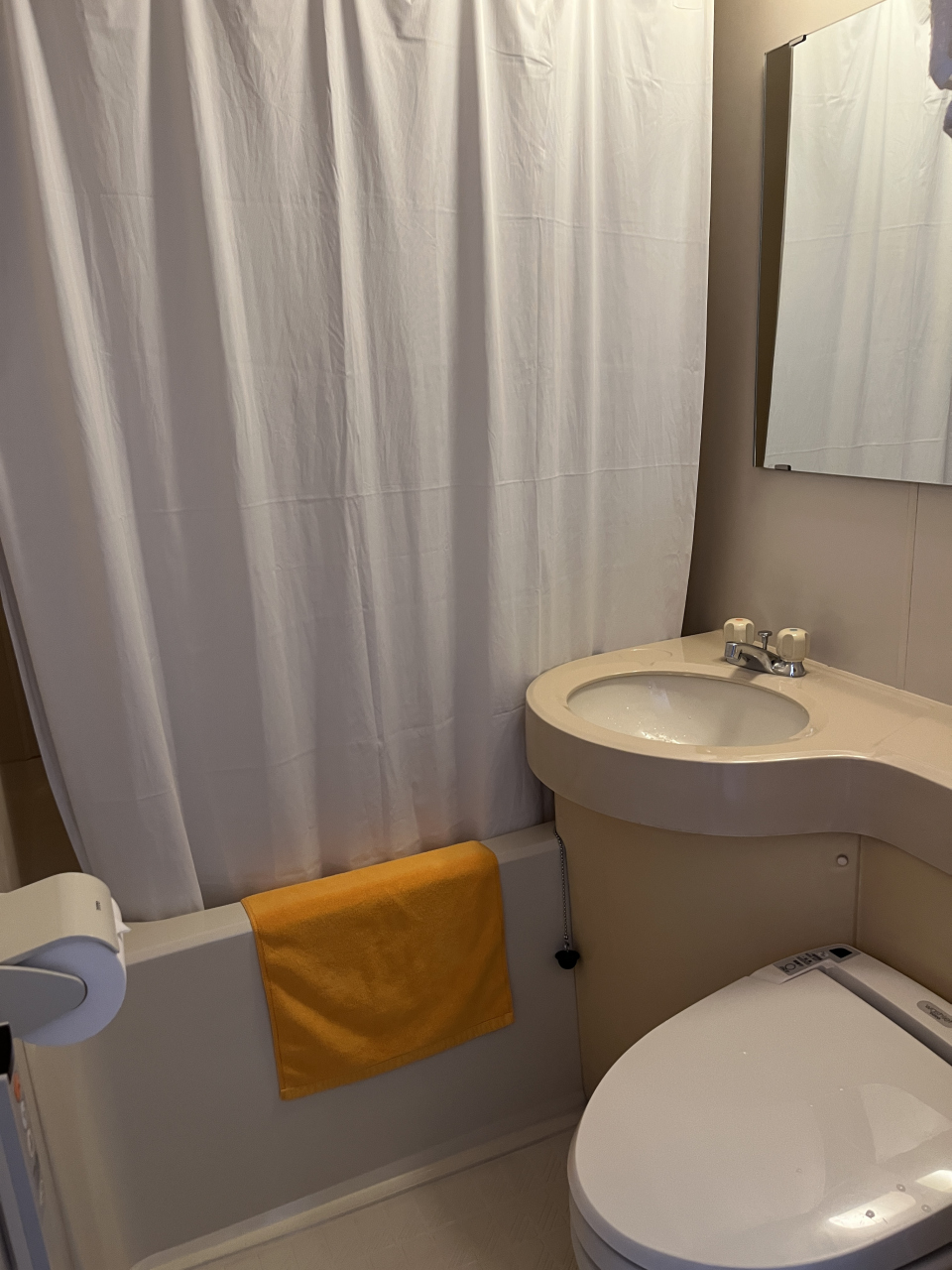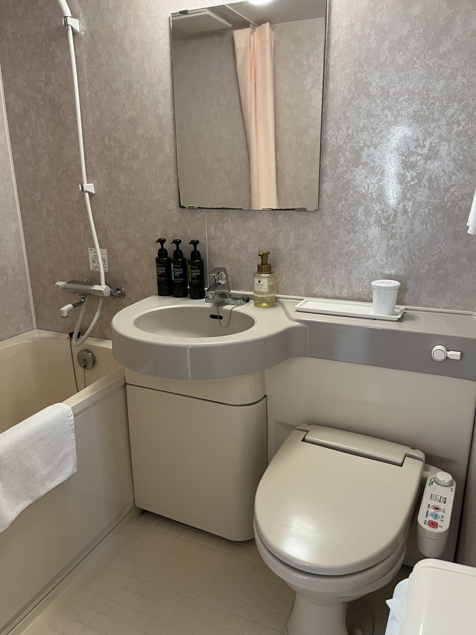 ホテル自体は客室も清潔、フロントの対応も悪くないし、何より新館の大浴場は広々して快適です。スマホ用の充電ケーブルもあり、細かい配慮が行き届いています。ただ、アサインされた本館の部屋はバスルームの敷居が高く、夜中に利用するときには躓きそうで老人にはやや危険かなと思いました。