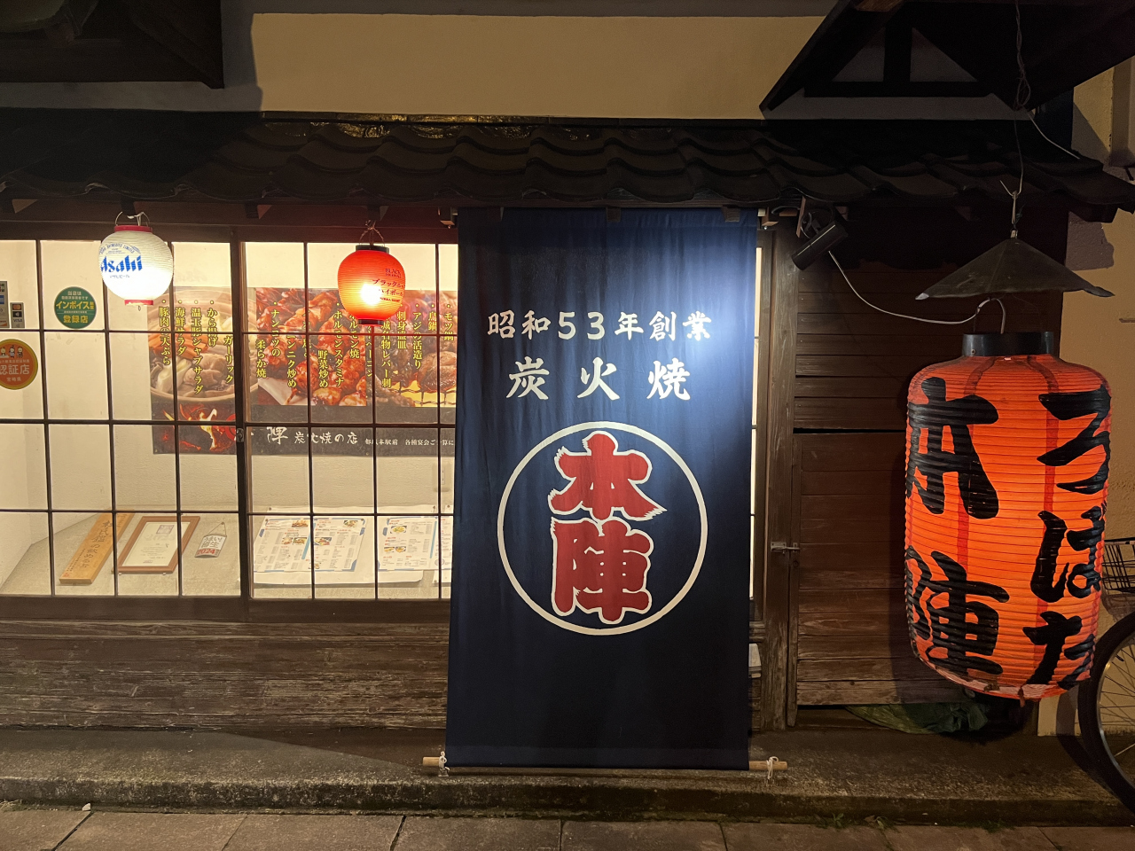 宮崎といえば鶏か牛肉。妻が鶏の炭火焼をぜひ食べたいというのでこの店を選びました。目抜通りの 橘通りから2本目の路地にあり、ホテルから5〜6分の便利な立地です。