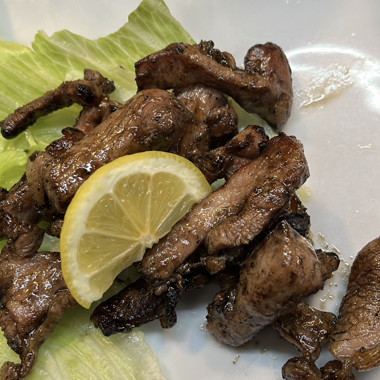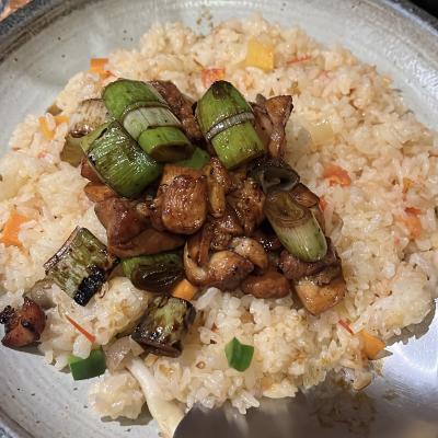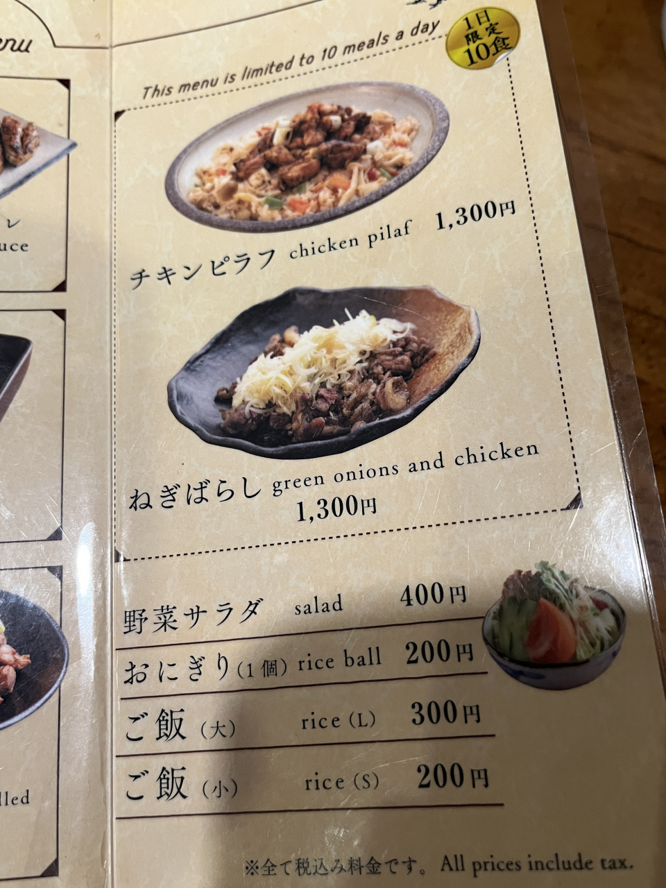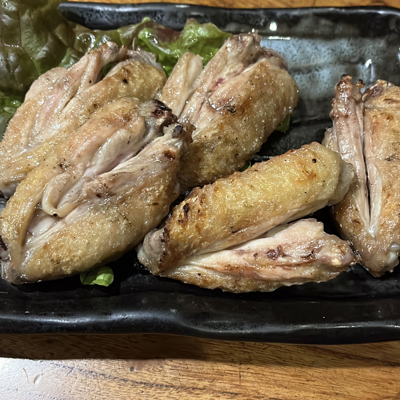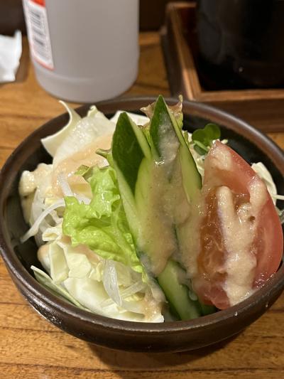 「焼き手が3人しかいないので注文は一度に」と言われたので、野菜サラダ、もも焼き(バラシ)、手羽焼き(5本)塩、チキンピラフを選択、私は生中と本霧島、妻はノンアルで〆て5,250円、コスパは悪くありません。