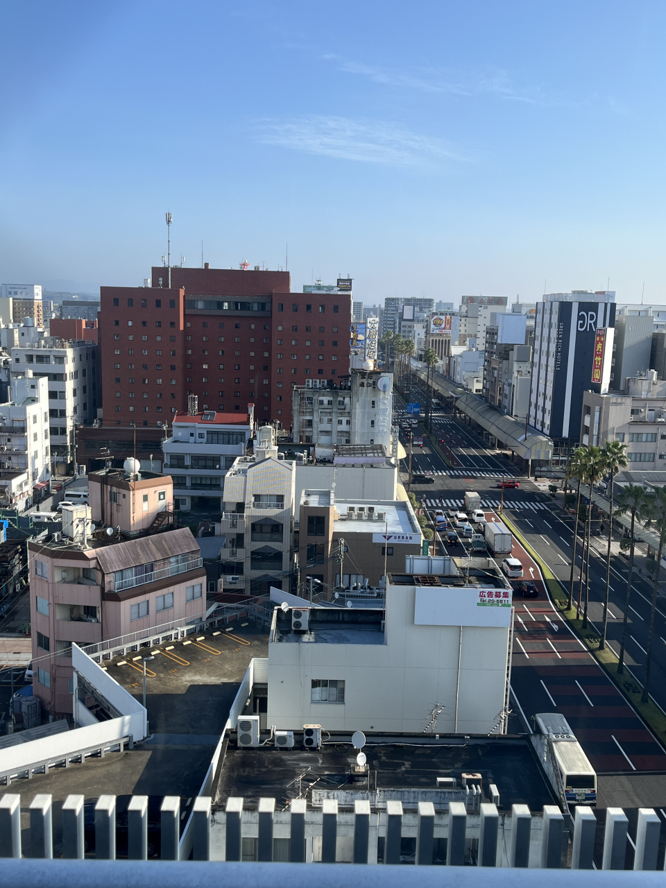 宮崎市の目抜通り 橘通りにあります。ドライブ旅で利用しました。隣接する自走式立体駐車場が1泊1,100円で利用できますが、エレベーターがないので入庫前に荷物を下ろしておいたほうが賢明です。