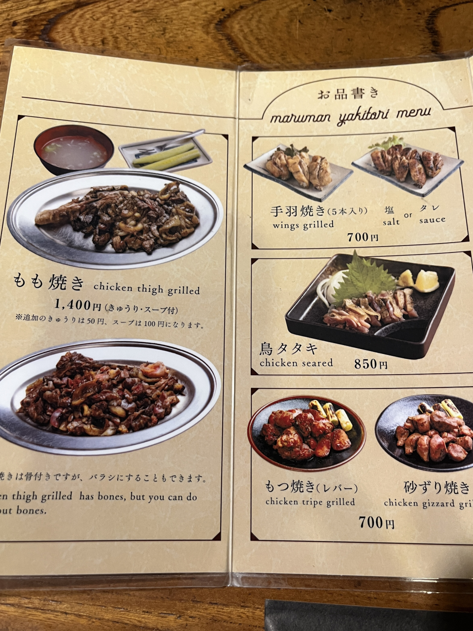 1954年(昭和29年)創業、元祖もも焼きの人気店です。平日の午後6時前に訪れたところ、雨だったせいか10分ほどのウェイティングで入店、カウンター席に通されました。