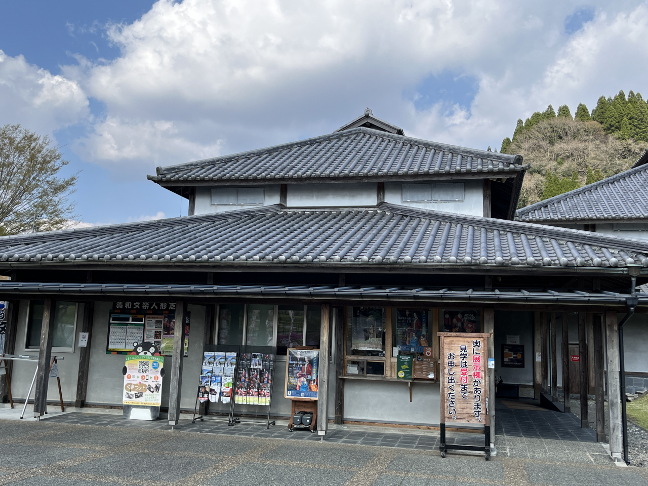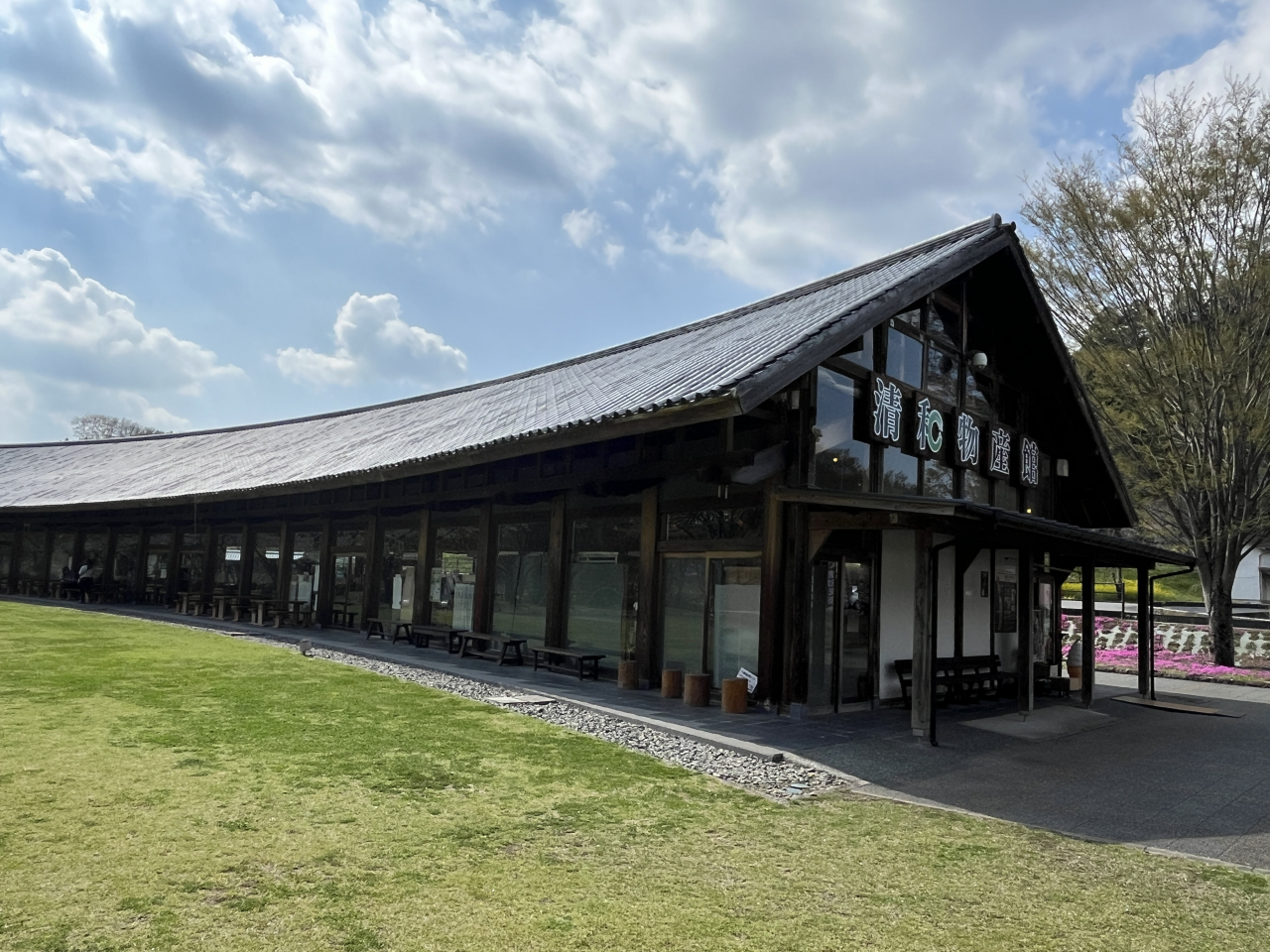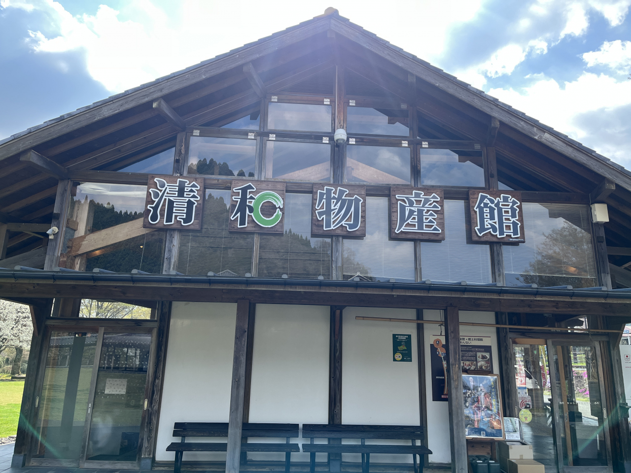 高千穂峡から熊本空港に向かう途中、国道218号ひむか神話街道沿いの道の駅 清和文楽邑にあります。美しい自然に囲まれた道の駅には、人形浄瑠璃の公演を行う清和文楽館や、農産加工品や栗銘菓などを販売する清和物産館「四季のふるさと」などがあり、レストランはその一角にあります。