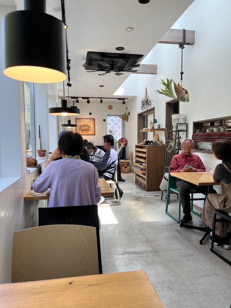 白を基調としたお洒落な店内に15席ほど、テラスにも10席ほどあります。ペット同伴客はテラス席でしょう。天井につけた2台のB0SEスピーカーからBGMが流れていますが、サブウーファーの低音ばかりが響いて、音楽は聴こえずやや不快です。
