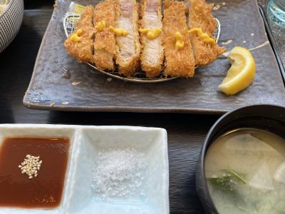 鹿児島中央駅ぐるめ横丁にあるトンカツ屋です。アクセスが良いので乗り継ぎの合間に利用しました。11時開店直後に一番乗り、窓際のカウンター席です。