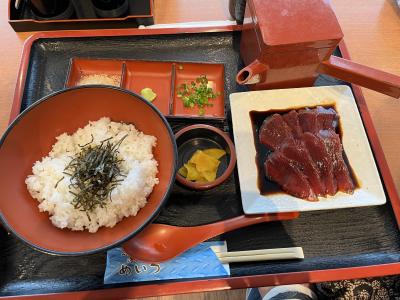 それで、私は枕崎でさんざんカツオを食べてきたので海鮮丼 900円、妻はもちろんカツオ一択でかつおめし 900円をチョイス。かつおめしはヅケのカツオを刺身や漬け丼、最後はひつまぶしのように出汁をかけて食べるスタイルでこれが大正解。私もヅケをお裾分けしてもらいましたが、枕崎のぶえん鰹の刺身より美味しい、絶品です。海鮮丼ももちろん申し分ありません。