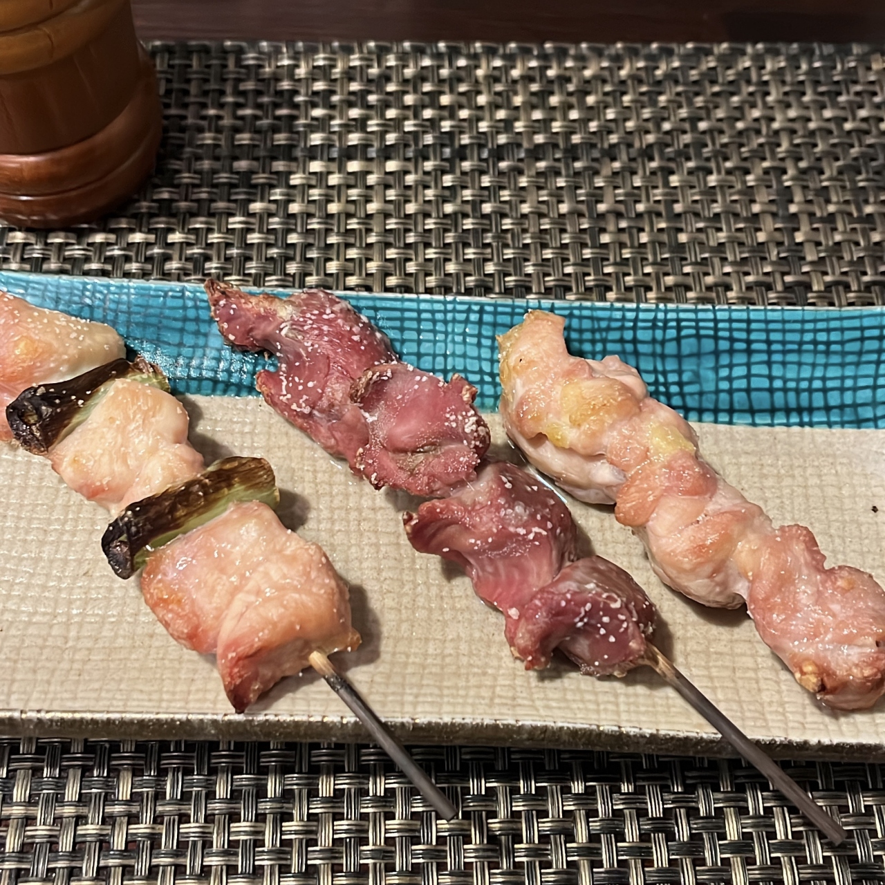 お通し(300円)の後、刺身5点盛り合わせ 1,490円、串焼き3本(ねぎま、モモ、砂肝)@140円くらい、厚焼き卵 690円を注文。初めてなのでオーソドックスなオーダー。料理は悪くありませんが、これといった特色もなくごく普通。期待が高すぎたかもしれません。