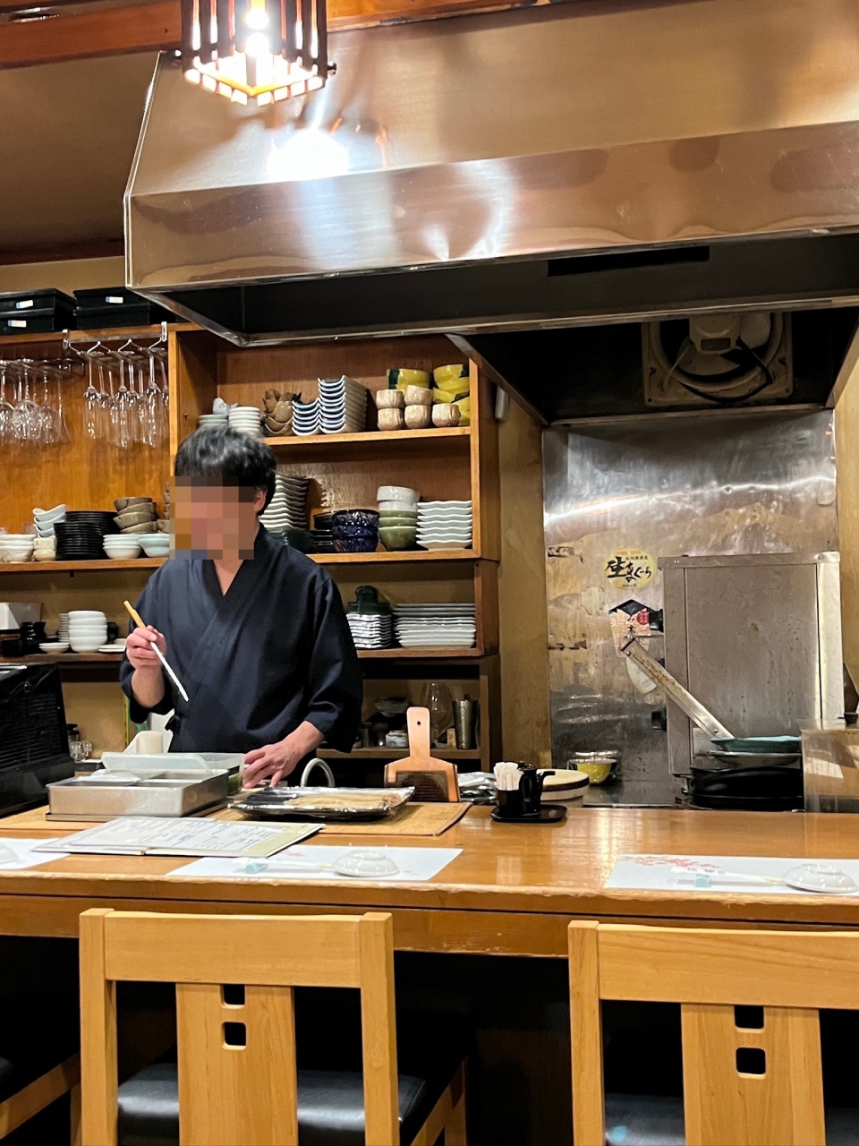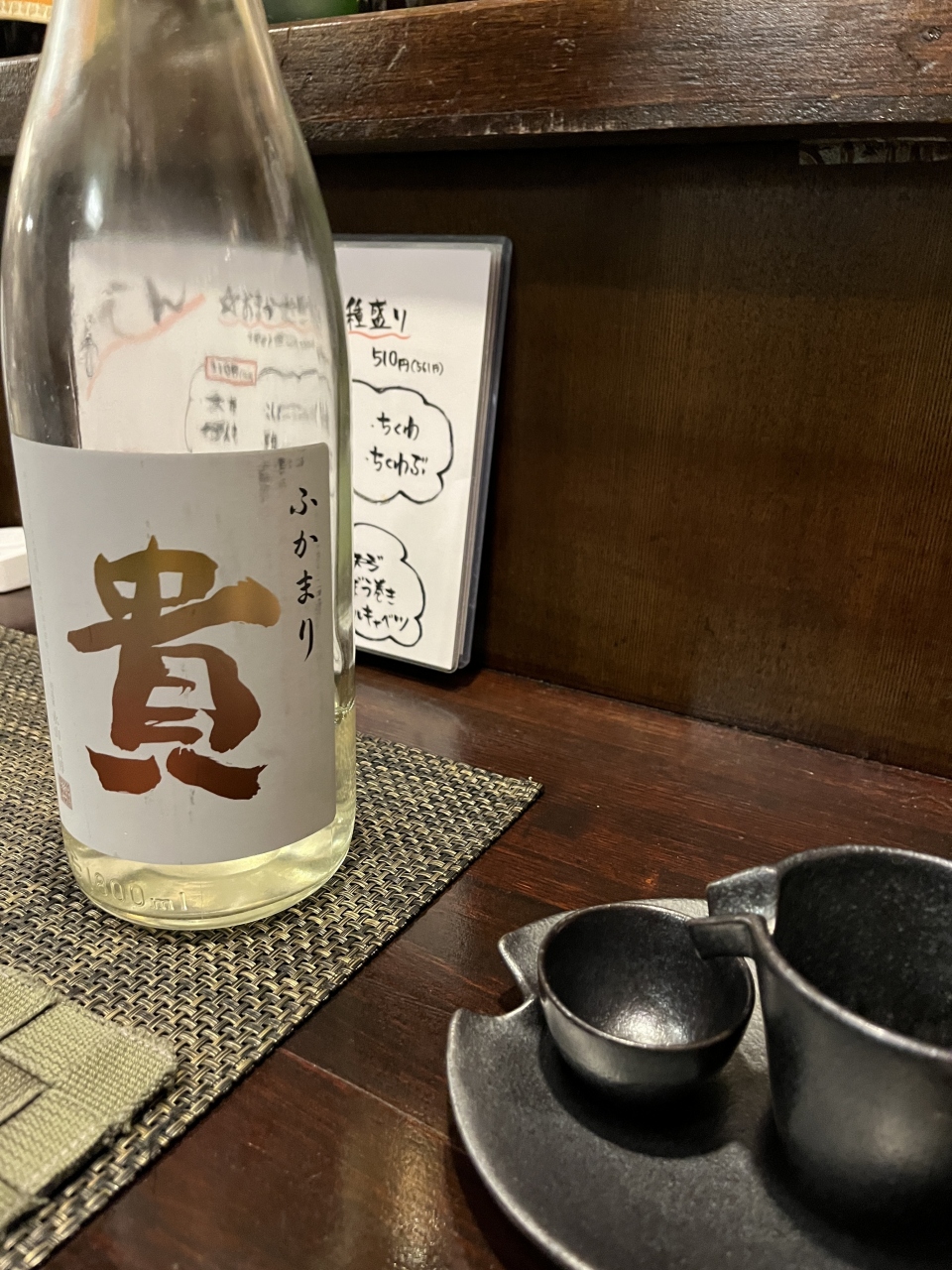 店はカウンター、テーブル、座敷を含め27席、さほど広くはありません。この日も満席が予想されるのか、予約の際「時間制になるかもしれない」と念を押されましたが、開店直後(17時)は無人、18時半ころようやく満席となりました。接客は悪くはありません。