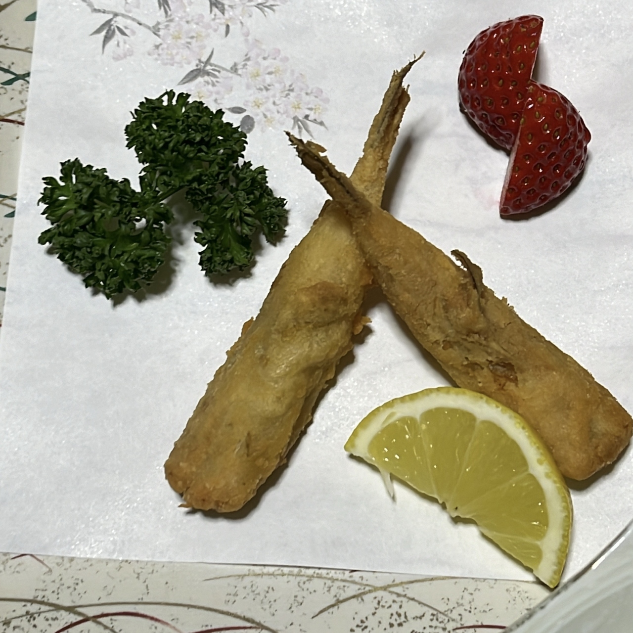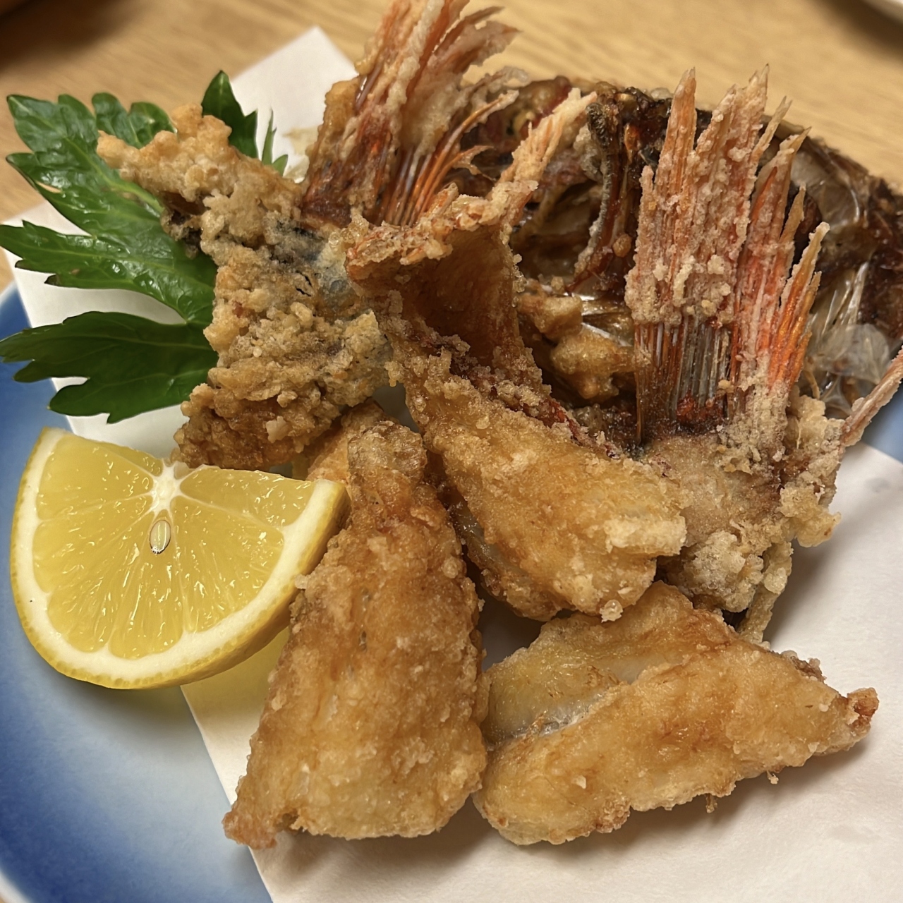 カサゴはカラッと揚がって骨せんべいのよう。申し分なし。