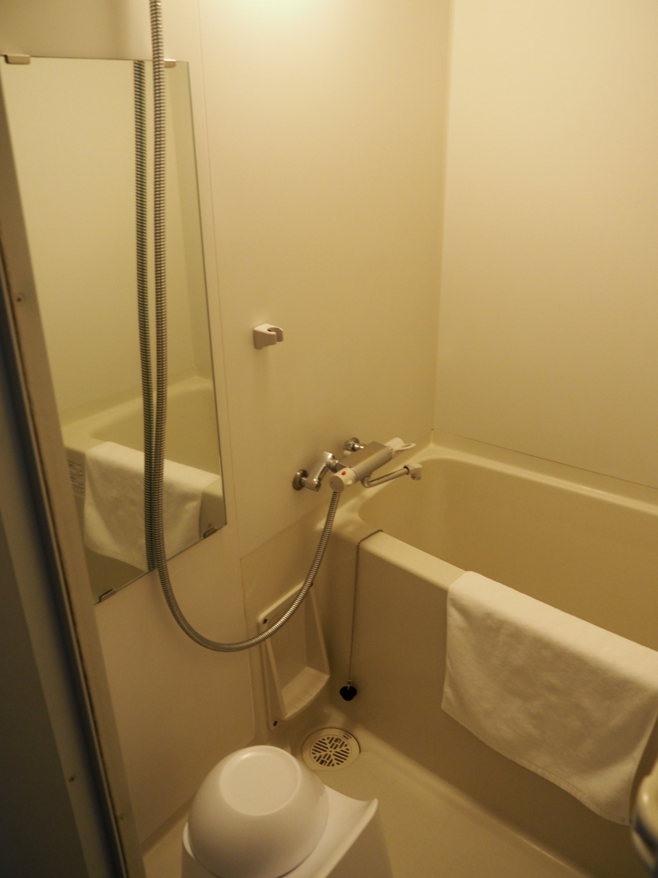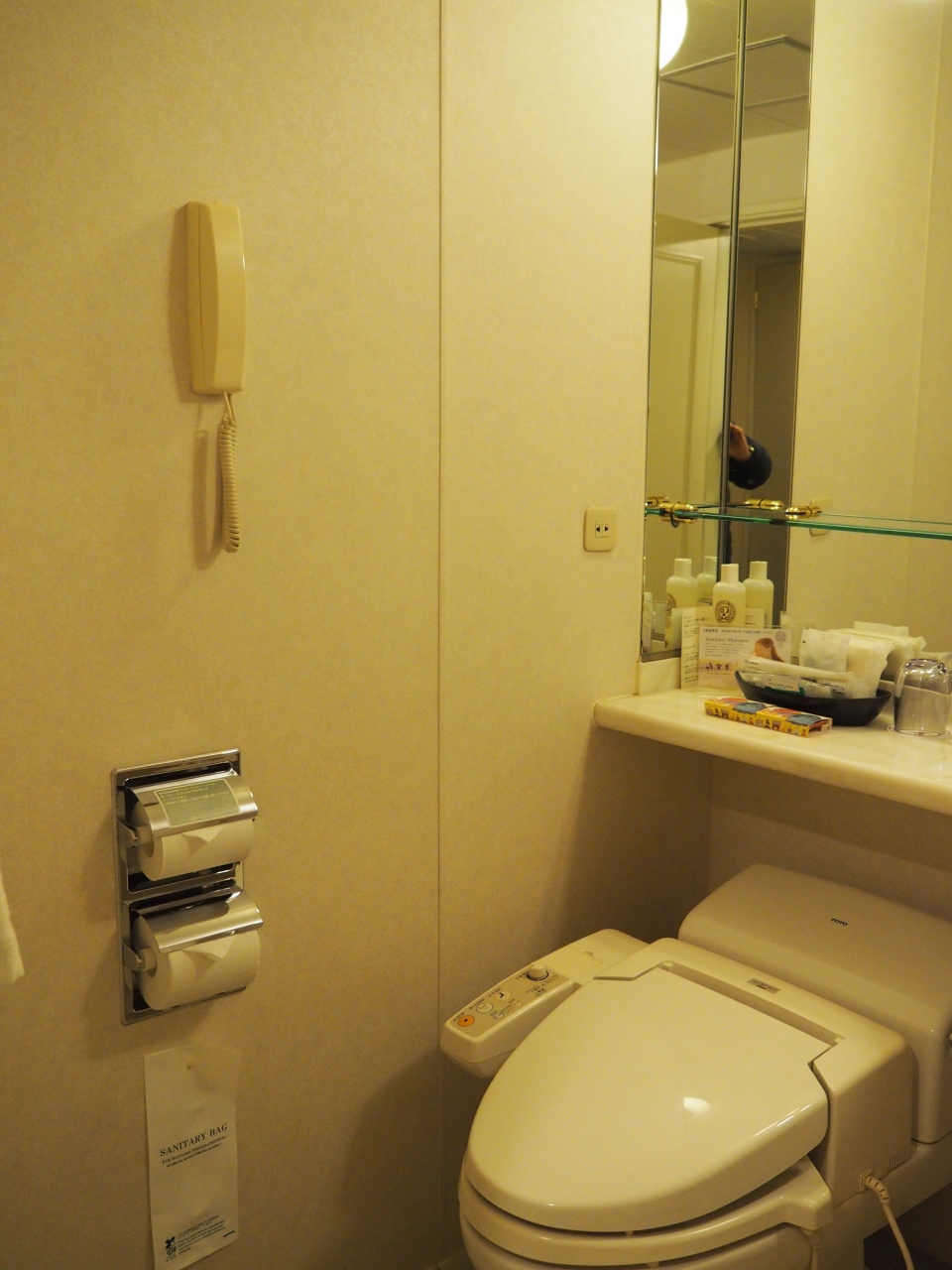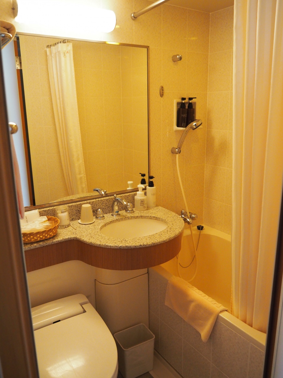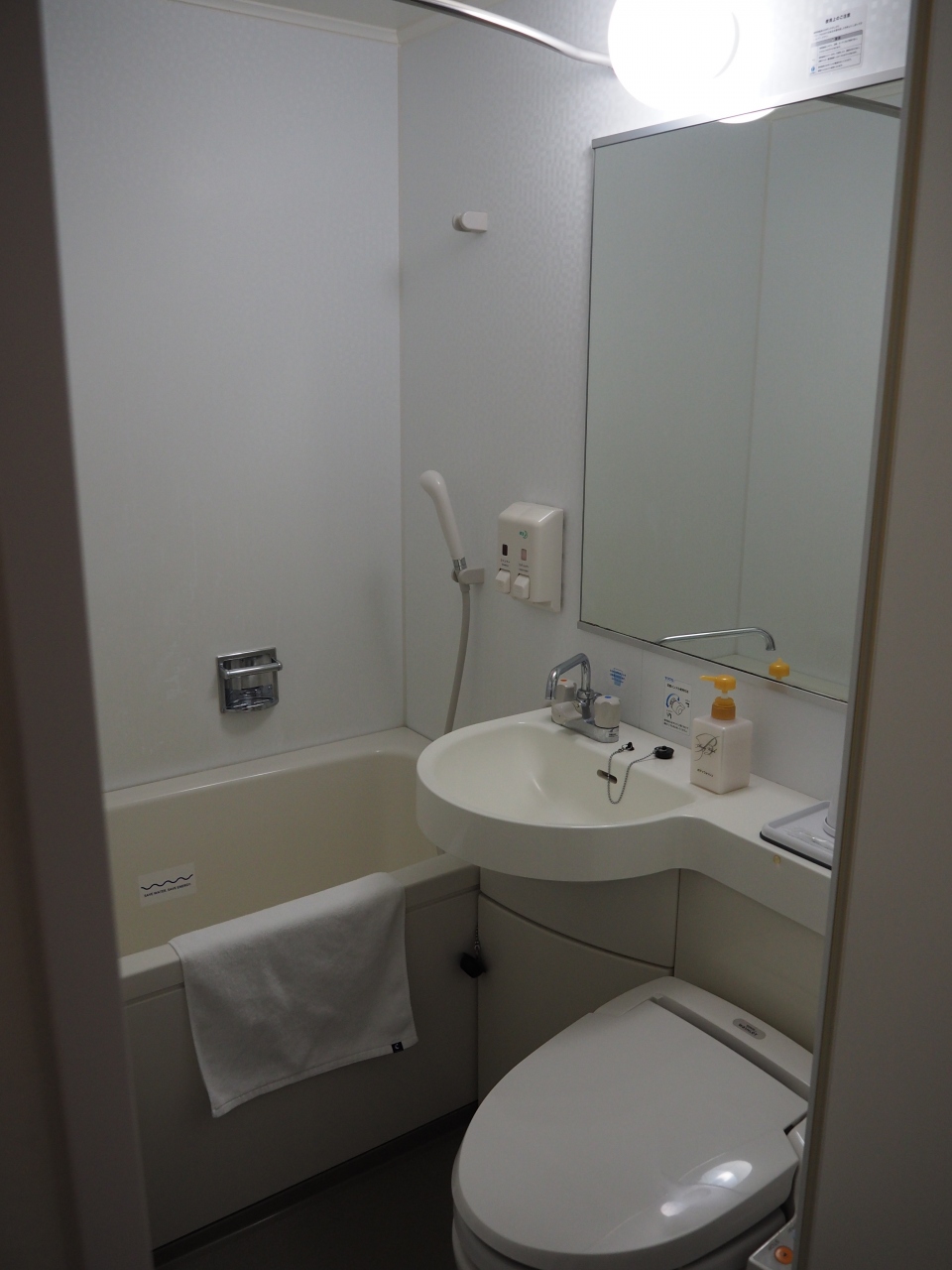 客室は12平米のシングル。大浴場があって、ユニットバスを使わなかったせいか特に狭さは感じません。