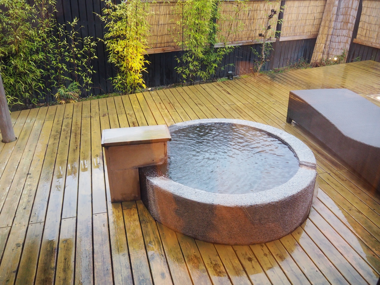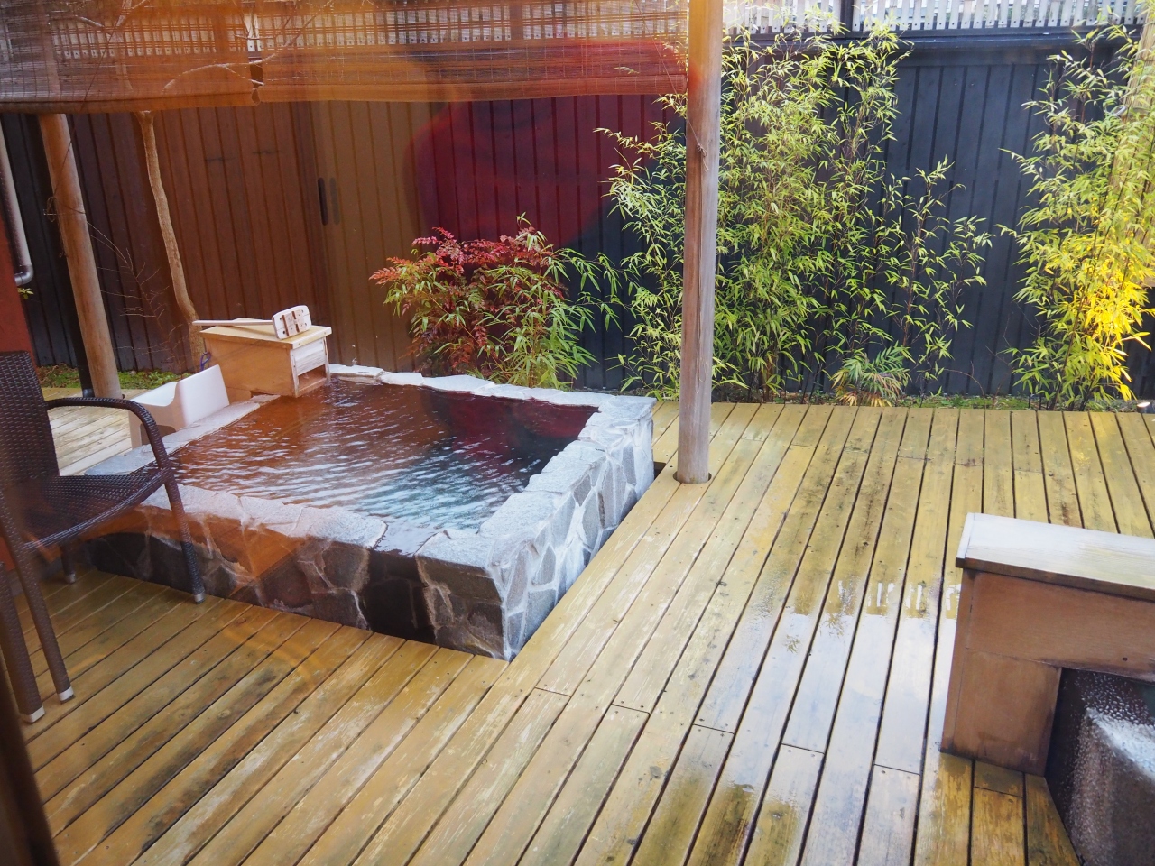 部屋には贅沢にも内湯に屋根付き露天、完全露天の3つの風呂があり全て24時間源泉掛け流し、いつでも好きな時間に温泉を楽しむことができます。