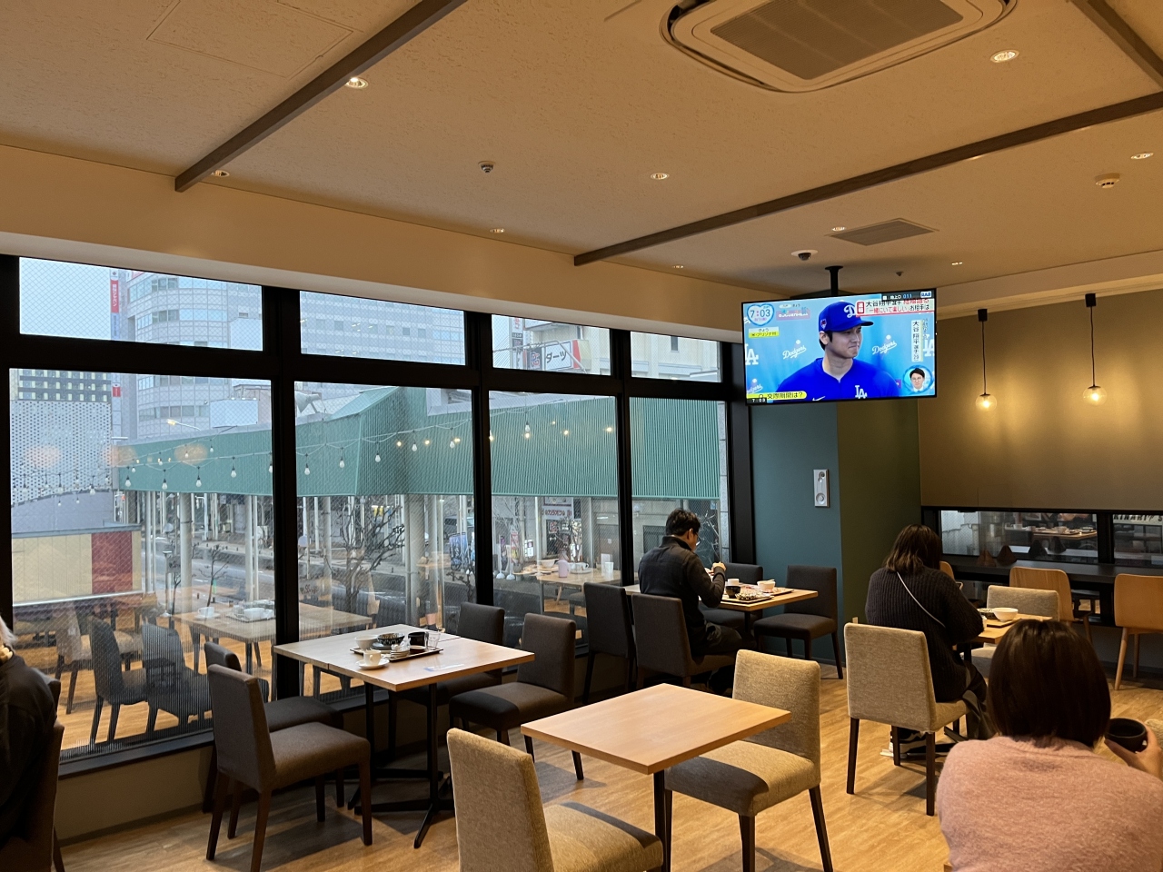 「次の予定がある」と答えておいたのが効いたのか、30分ほどでホール席に案内されました。待合所のメニューで注文は決めてあります。