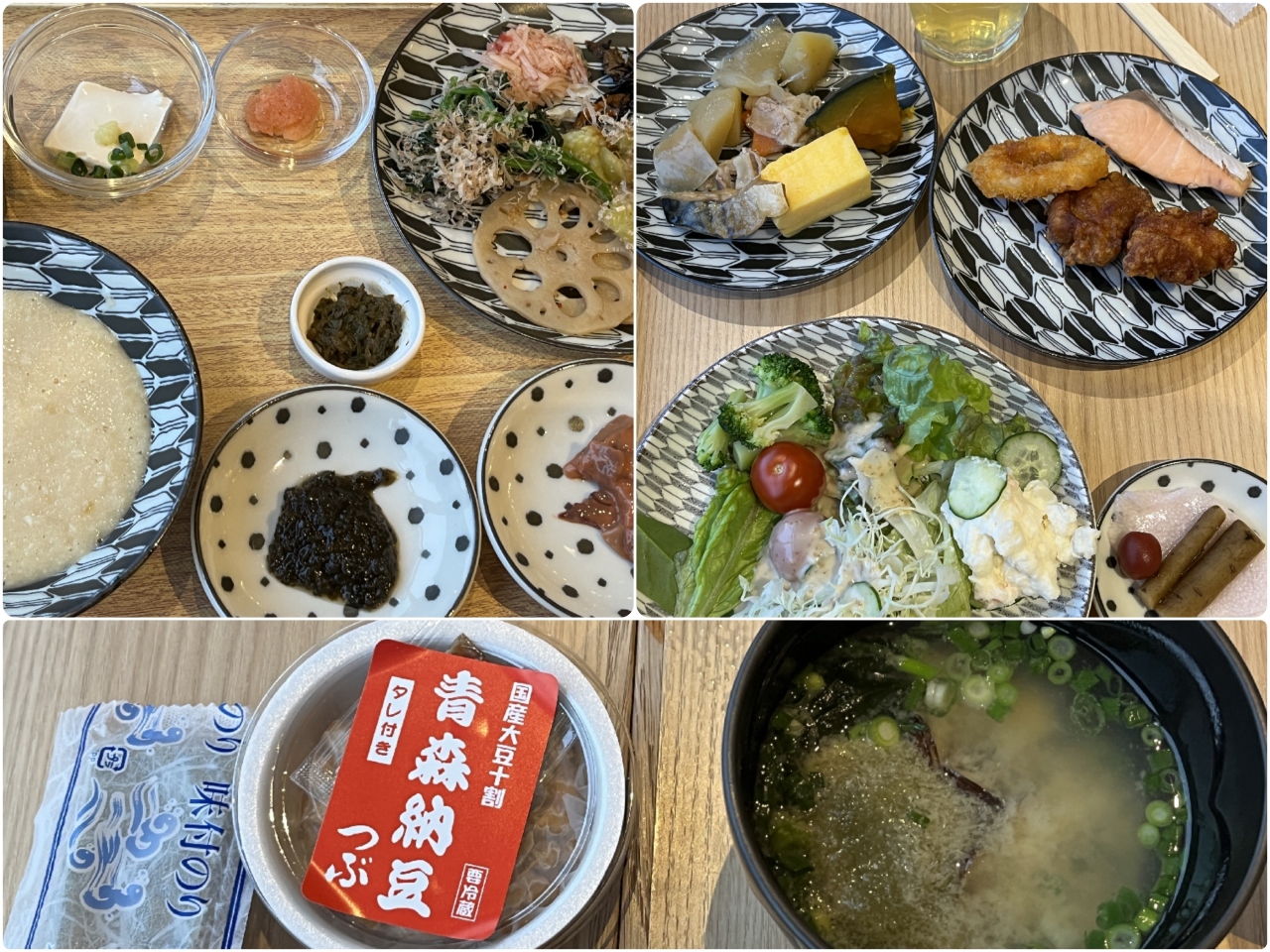 このように客室は ??ですが、翌朝の朝食にはびっくり。十分な広さでおしゃれな食堂にご当地名物を含め多彩な料理が並んでいます。その美しさに惹かれ目一杯取り分けましたが、どれも美味しい。大満足です。ビジホとしては最上級です。