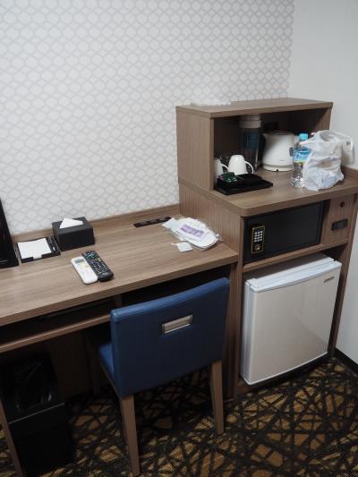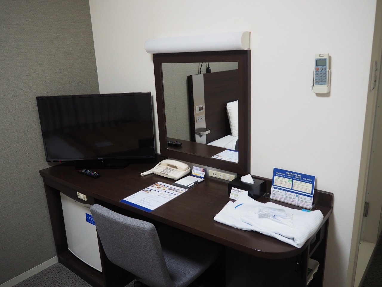 部屋は広さ13平米のビジホサイズ。可もなく不可もなし。