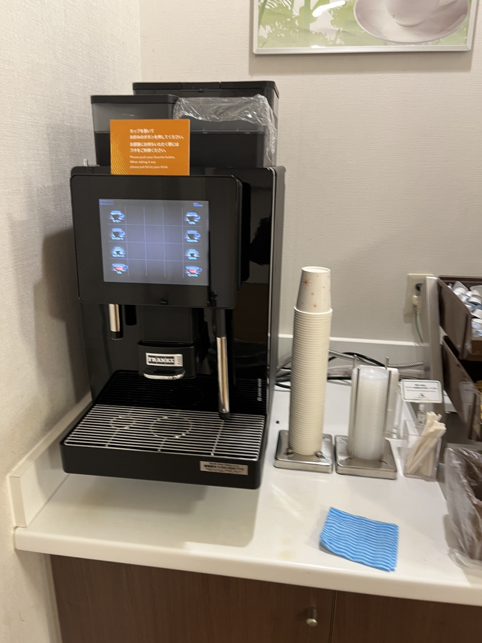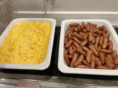 朝食無料ですが、品揃えは普通。これといった特色あるメニューはありません。紙コップ・プラスプーンはアメリカではよくありますが、日本では珍しい。食器返却はセルフサービスです。