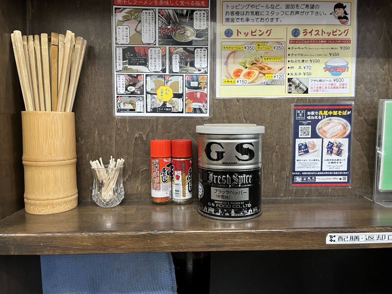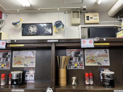 青森では煮干しラーメンが有名と知り、青森駅ビル1階にあるネットで評判の当店を訪れました。平日午後1時すぎでしたが3〜4人の行列、10分ほど並んで入店。事前に店舗前の食券機で食券を買うシステム、よくある形式です。