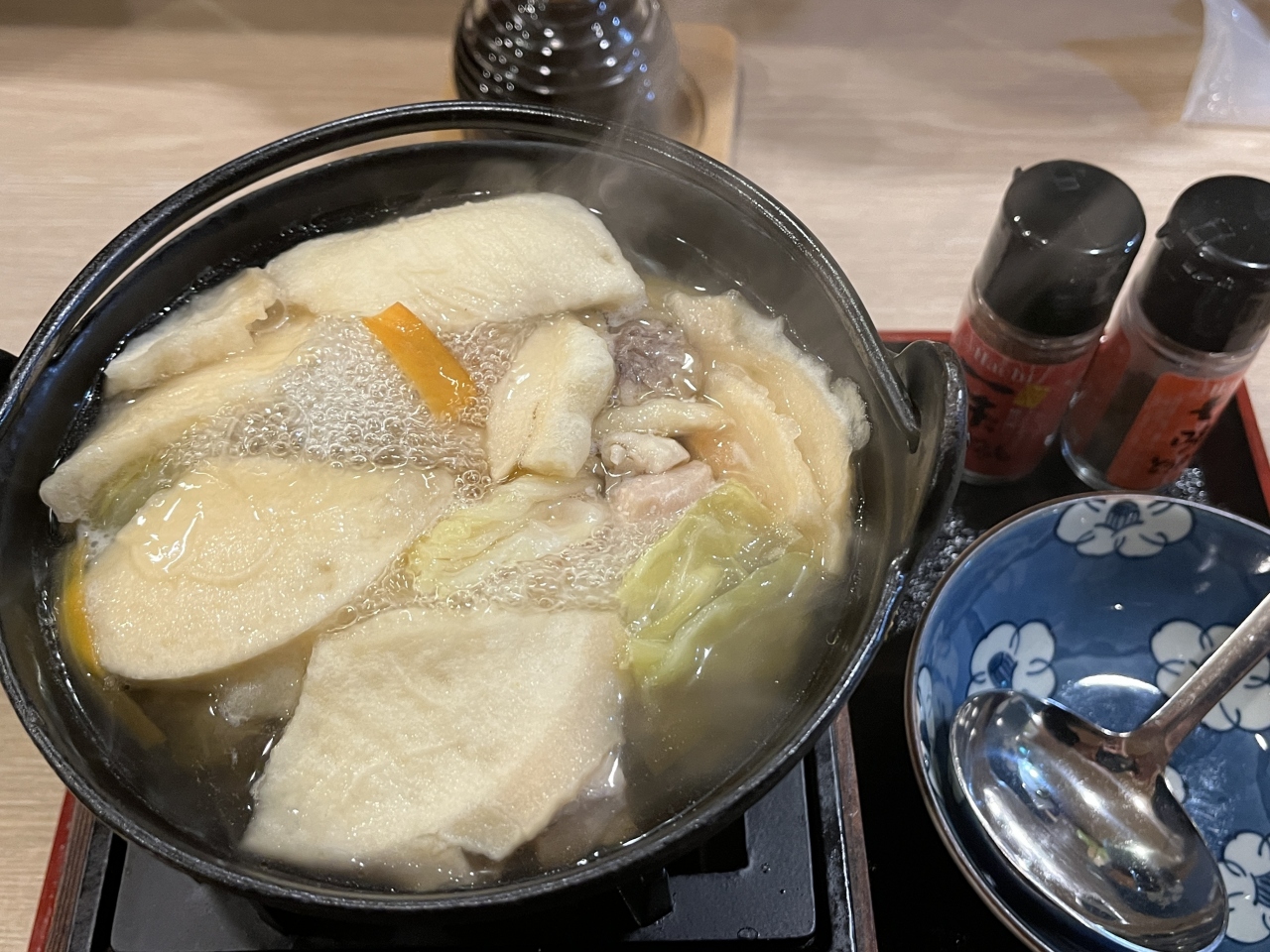 〆を何にしようかと店主に尋ねると、八戸名物せんべい汁があるというのでそれを注文。すっきりと美味しい出汁でこれも満足です。