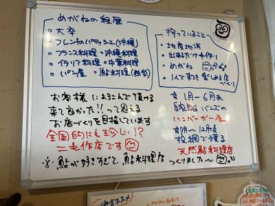 1月〜6月末はハンバーガー店、7月〜12月頃は天然鮎料理店という珍しいレストラン。アユ漁にはまった店主(自称「めがね」)が鮎料理を提供するために始めたお店です。